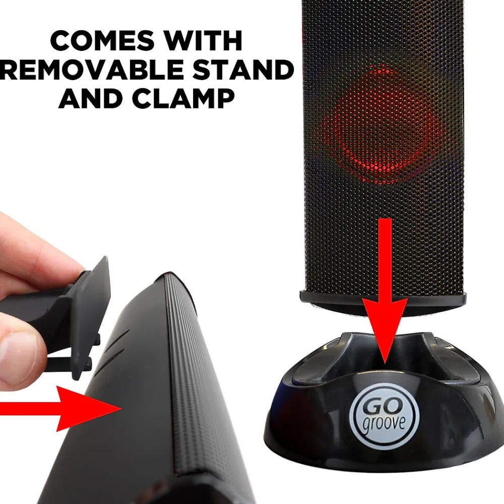 - INCLUDES LAPTOP CLIP & DESK STAND – Mount the speaker on the top or side of your monitor with the included clamp OR use the included standing base for desk tabletop placement