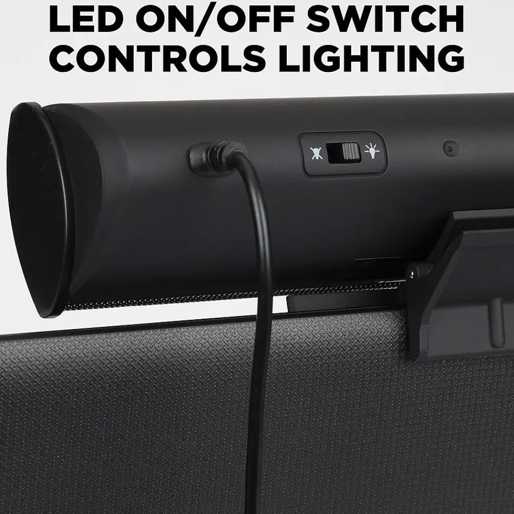 USB Powered Clip-On Sound Bar comes with LED, Mini Portable External Speaker Design for Monitor, Back Switch for Power and Audio Input and Power