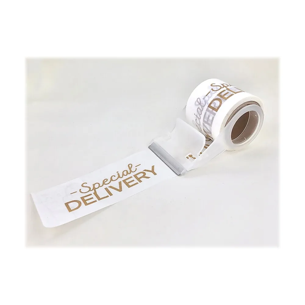 This Happy Mail packing tape offers excellent adhesion, dispensing, and handling properties.