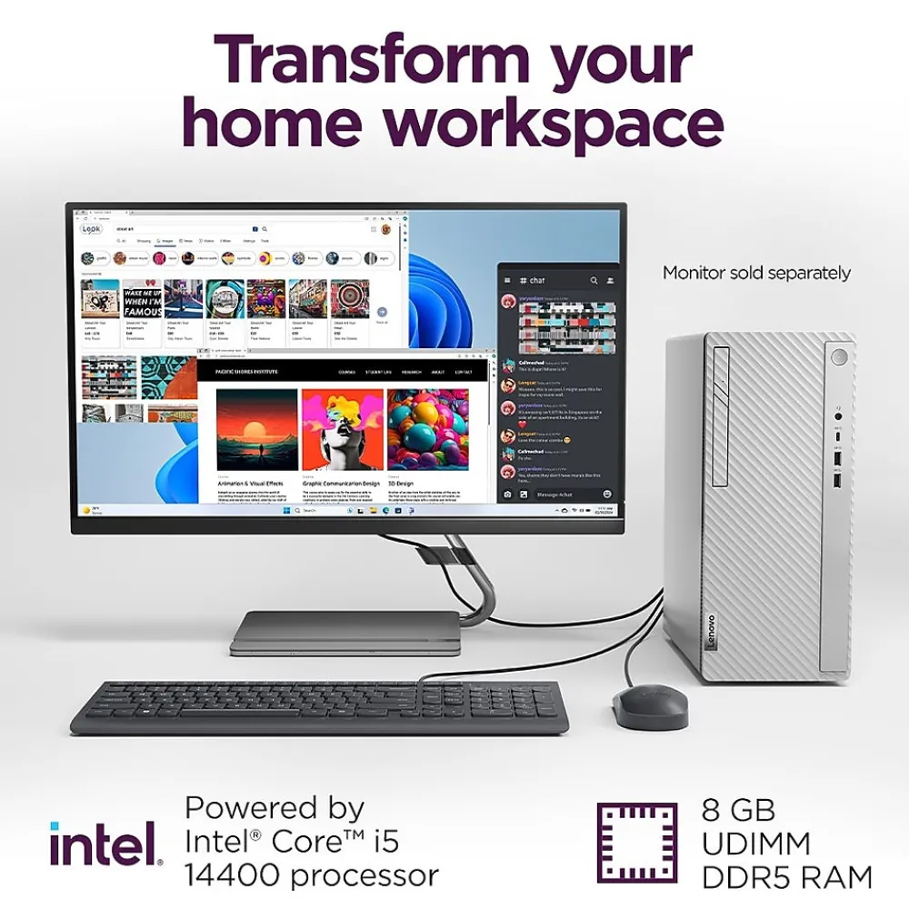 A perfect complement to your contemporary decor, the Lenovo IdeaCentre Tower desktop computer is a powerhouse driven by cutting-edge Intel Core i5 processor (14th Gen) and Intel UHD Graphics 730, keeping you productive and efficient from your own home. This desktop PC offers ample storage space while boasting enhanced connectivity options and ample ports to let you work, play, and create seamlessly.
