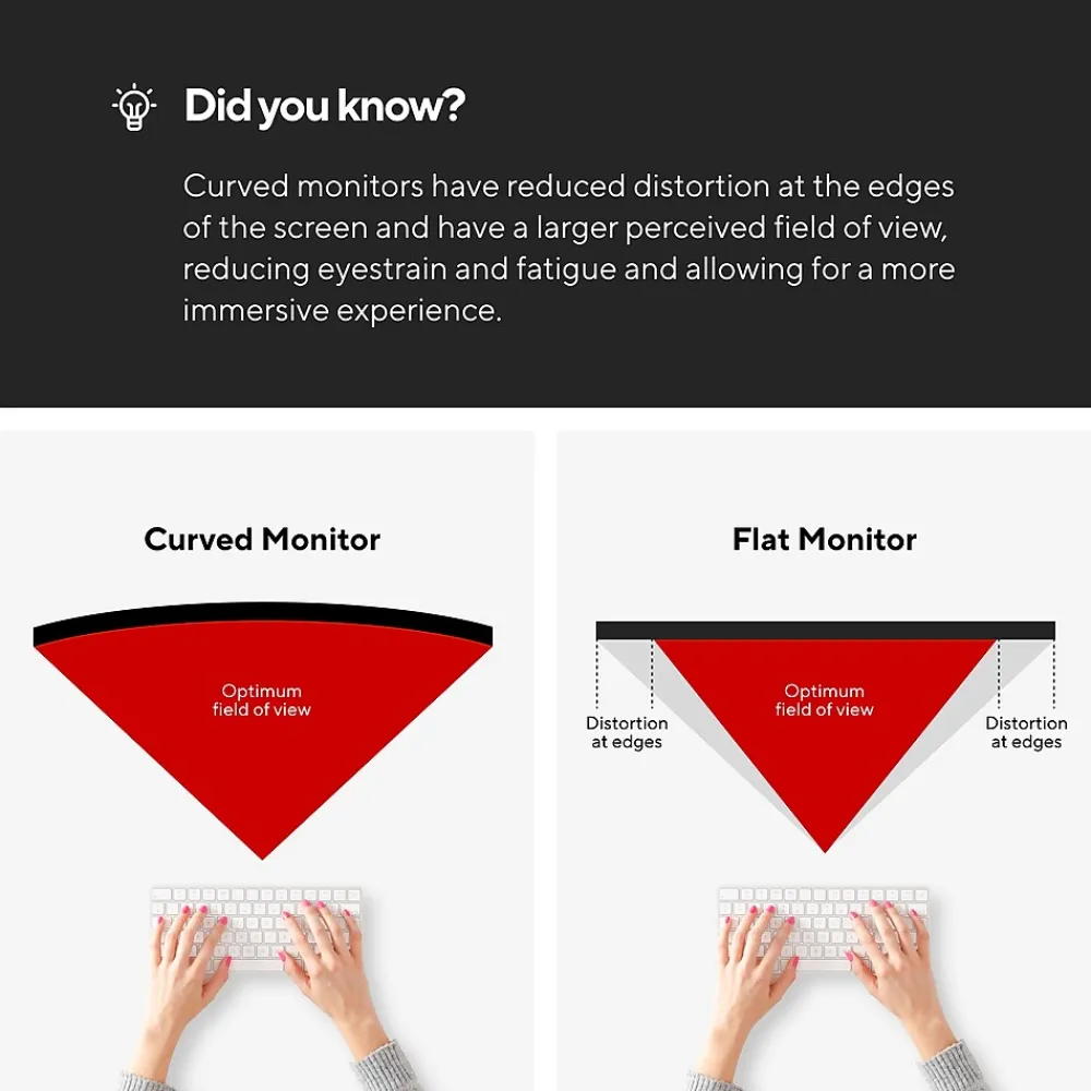 - WHY BUY A CURVED MONITOR?: Say goodbye to eye strain & fatigue! The curve matches the natural contours of your vision, reducing distortion & glare, leaving you focused & comfortable