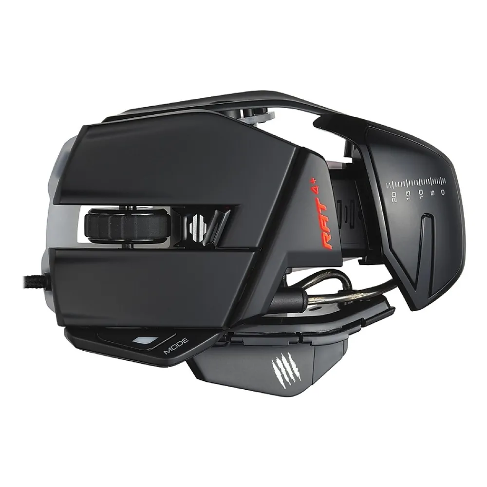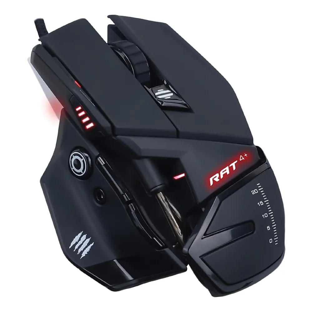 The R.A.T. 4+ Gaming Mouse from MAD CATZ is built upon a lightweight chassis and features an accurate optical sensor, adjustable palm rest, and 7 programmable buttons. With an incredible response time, the R.A.T. 4+ dominates the battlefield and levels-up your gaming. The R.A.T. range is precision engineered with adjustable key components to enhance your gameplay experience. It features the signature adjustable palm rest and has been expertly engineered to accommodate grip, claw, or fingertip style play, delivering ultimate gaming comfort even in the heat of battle. R.A.T. 4+ is armed with a gaming-grade Pixart PMW 3330 optical sensor, featuring a 4-level DPI switch from 800 to 7200 DPI, and delivering movement speeds of up to 150 in. per second. The R.A.T. 4+ has been crafted for the fast-paced gameplay of today’s competitive gaming, giving you the edge you need to win! Program your favorite commands and macros to each of the 7 buttons and save them to 4 individual profile slots on R.A.T. 4+. All your moves for the games you play the most, right at your fingertips when you need them. R.A.T. customization goes beyond physical adjustment. Regardless of your preferred genre or style of play, every aspect of the sensor, button configuration and lighting can be tweaked to enhance performance. Control the lighting effects on the R.A.T. 4+, such as breathing, heartbeat, and static, you can even adjust the speed to match your mood.