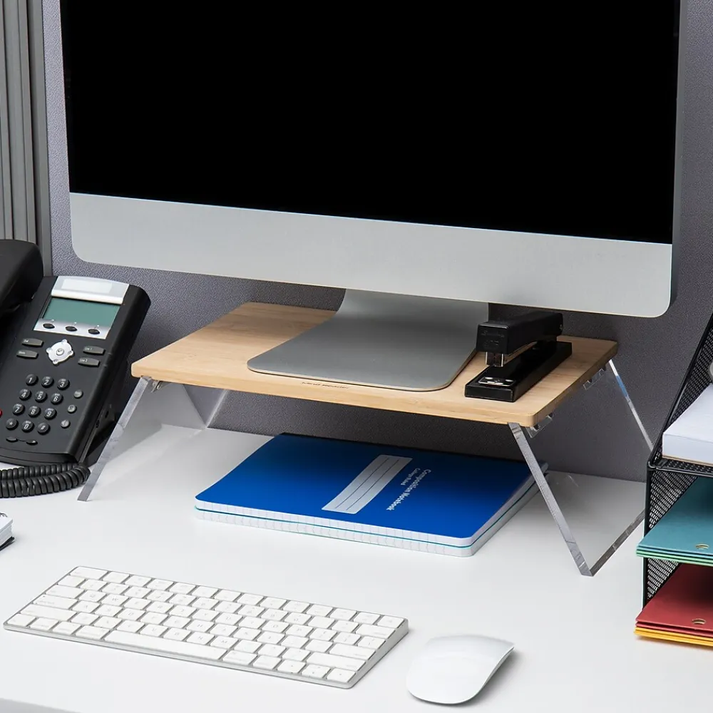 - Stylish design: With its clear and tan colors and stylish design, this monitor stand blends seamlessly with your existing office or home office decor, adding a touch of elegance to your workspace