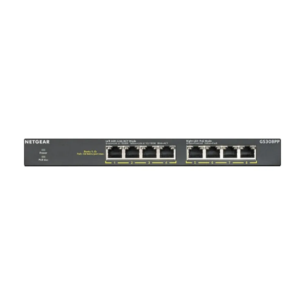 The Netgear 300 Series Gigabit Ethernet unmanaged switch with PoE provides easy, reliable, and affordable network connectivity for home and small offices. With this unmanaged plug-and-play switch, you can expand your network connections to multiple devices instantly. The SOHO gigabit PoE unmanaged switch supports Netgear’s FlexPoE exclusive upgradeable PoE feature. Powered by the flexible integrated PoE+ technology, you can increase or decrease the PoE budget by simply purchasing a new Netgear FlexPoE power supply, effectively future-proofing small business networks and budgets. This unmanaged switch contains eight PoE+ ports with 83W total power budget, and includes Netgear FlexPoE, making it expandable to 123W (with separately purchased power supply module).