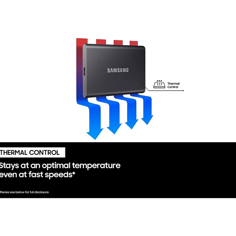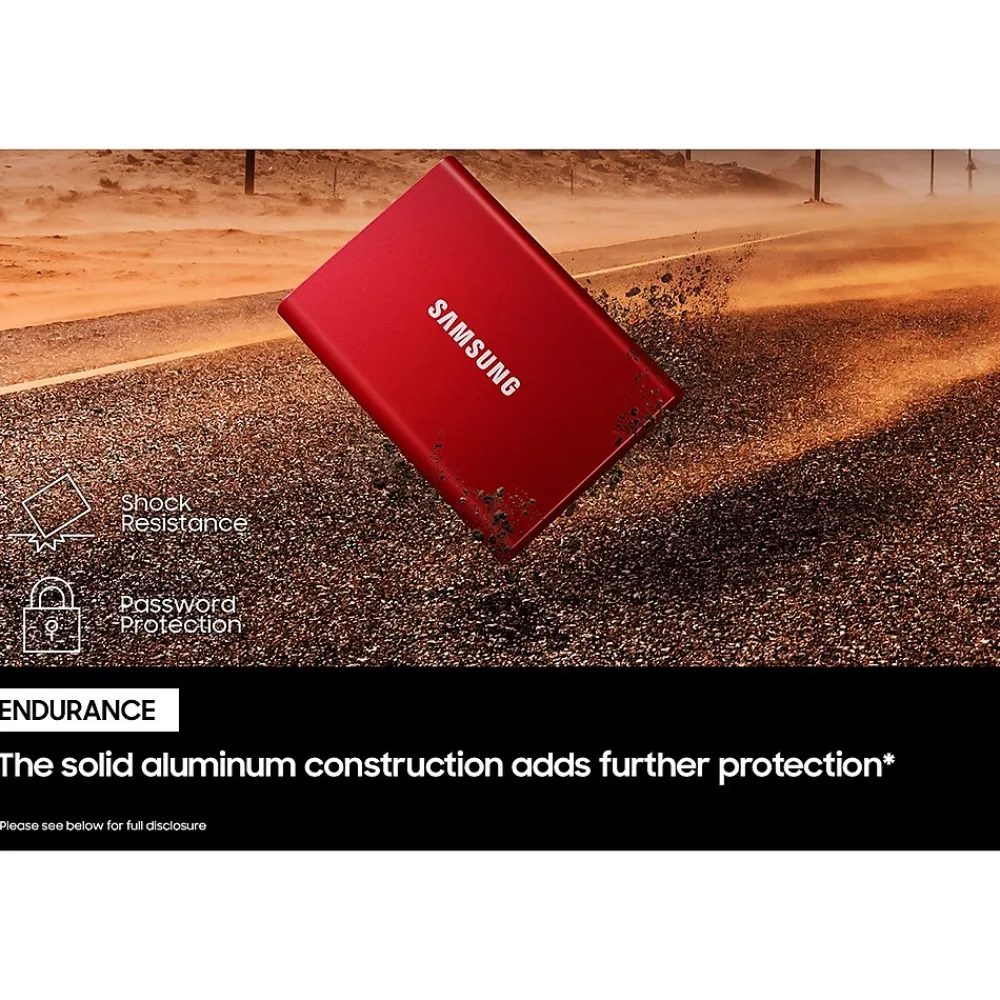 Create. Explore. Store. The Samsung T7 portable SSD delivers fast speeds and durable features to back up any endeavor. Build your video-editing empire, file your photographs, or back up your blogs all in an instant. Don’t waste a second waiting and spend more time doing. The T7 is embedded with PCIe NVME technology that brings you fast read and write speeds up to 1050/1,000 MB/s, making it almost twice as fast as the T5. Compact design with massive capacity.