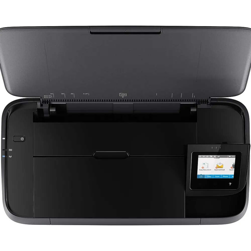 Portability meets productivity with the HP OfficeJet 250 mobile printer. Easily connect to your printer with its integrated Bluetooth® Smart technology and Wi-Fi Direct®. This quiet mobile printer workhorse has a long battery life and delivers the most pages when you are on the go. Ideal for mobile professionals and telecommuters, this high-quality, reliable, portable printer can be taken along virtually anywhere.