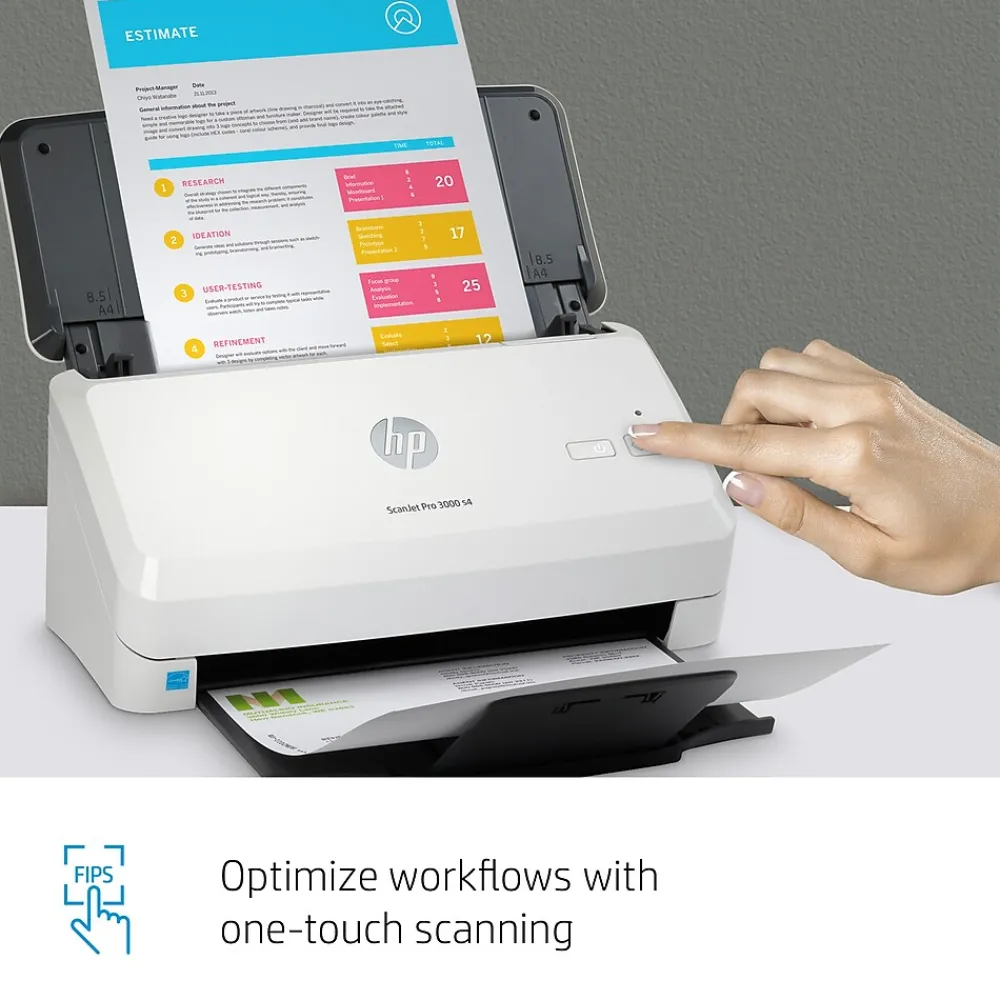 This HP Scanjet Pro desktop scanner is fast, affordable, and designed to handle everything from simple color jobs to complex workflows. Quickly and reliably digitize larger projects with scan speeds up to 40 ppm/80 ipm and a 50-page ADF. Recommended for 4000 pages per day.