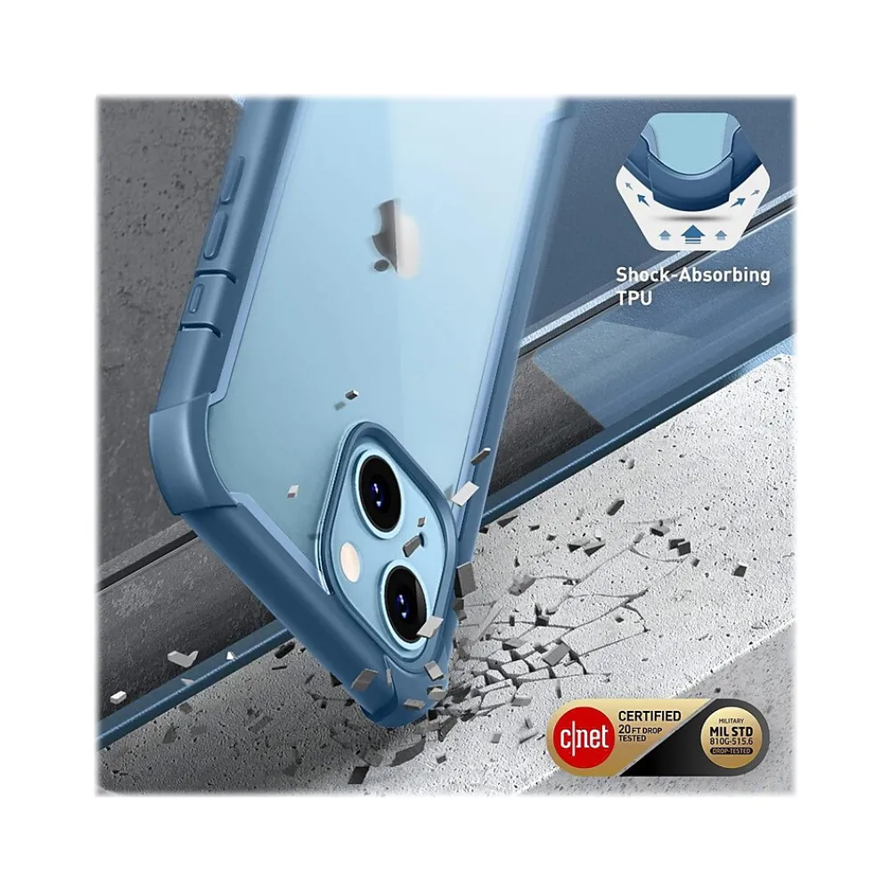 - Made of shock-absorbing TPU and comes with transparent back and blue sides