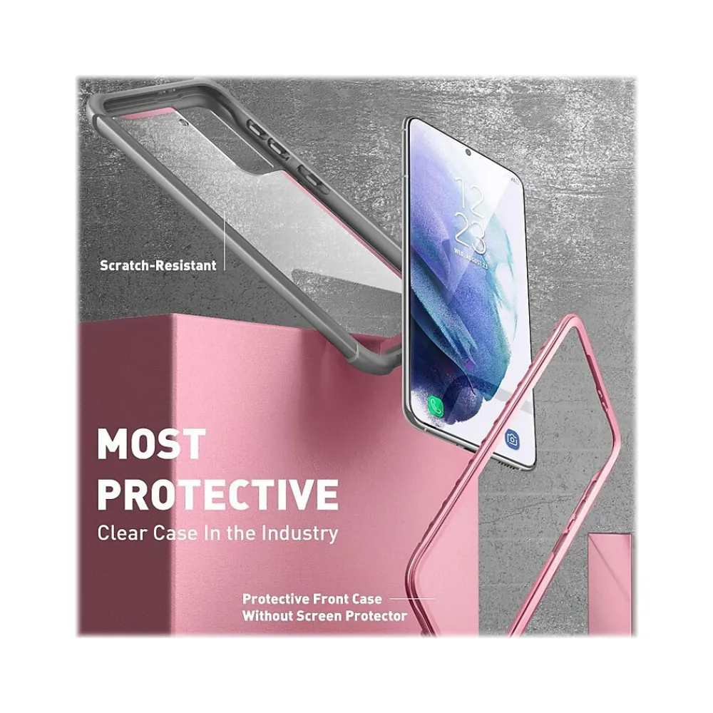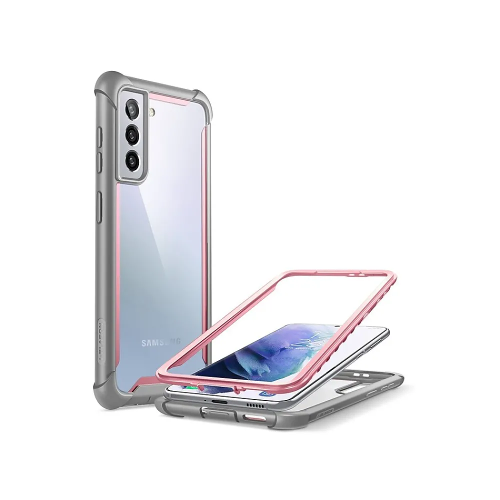This i-Blason Ares pink rugged case offers full-body protection against dust, dirt, and drops for your Samsung Galaxy S21 Plus. It features impact-resistant bumpers and port covers and is compatible with wireless charging.