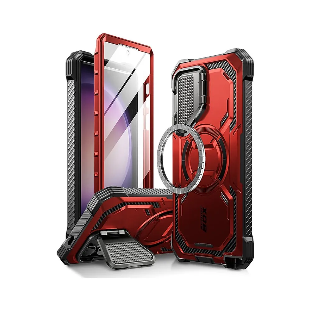 The i-Blason Armorbox protective phone case with full-body design protects your Samsung Galaxy S24 Ultra from bumps and drops. The case is MagSafe-compatible and stylus-friendly, and the magnets do not affect brush function.