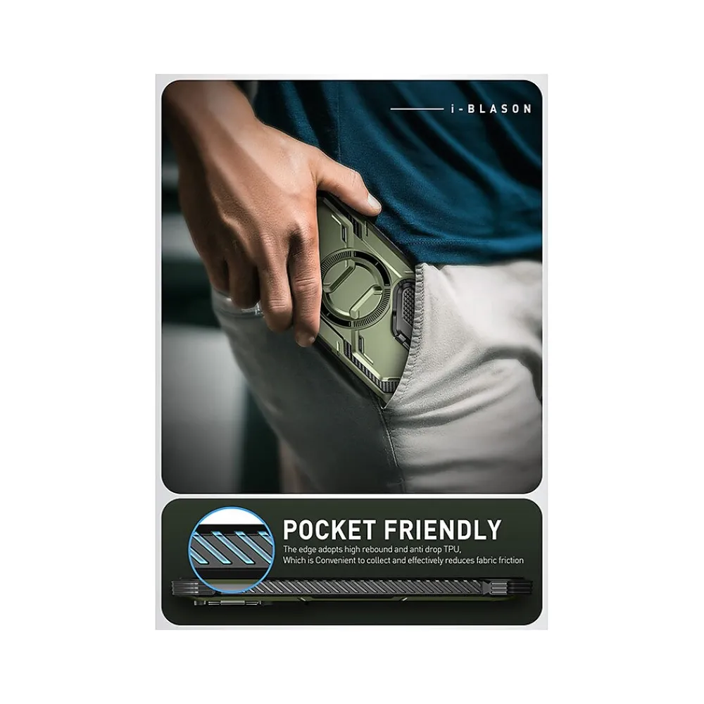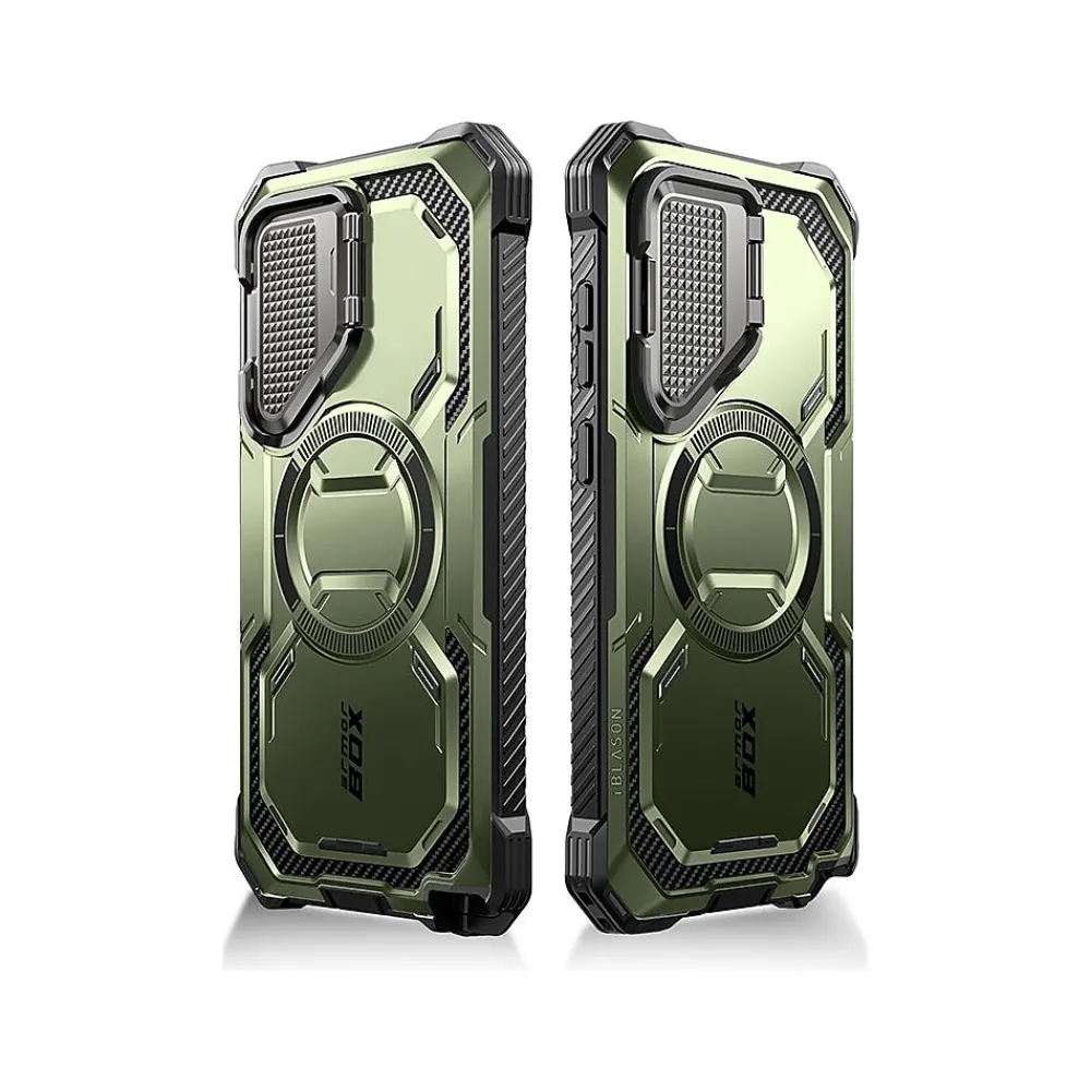 The i-Blason Armorbox protective phone case with full-body design protects your Samsung Galaxy S24 Ultra from bumps and drops. The case is MagSafe-compatible and stylus-friendly, magnets do not affect brush function.