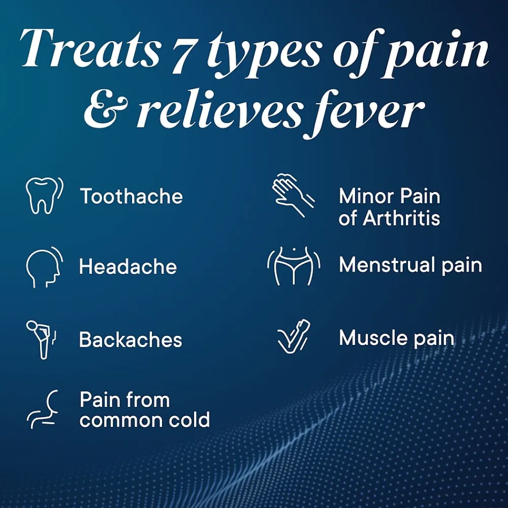 - Headache medicine, back pain medicine and joint or minor arthritis pain reliever that also provides menstrual pain relief and relief of muscle aches for adults and children 12 years and older