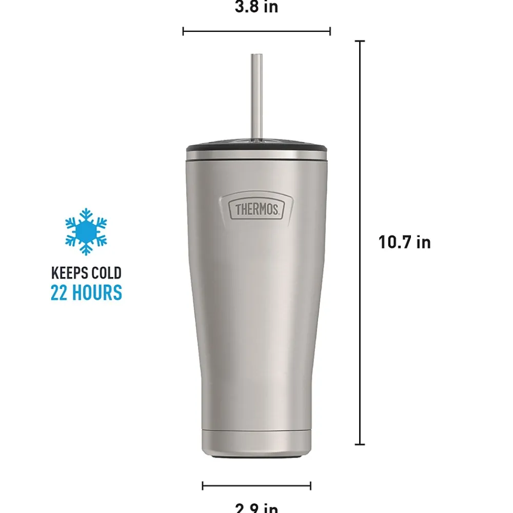 Starts cold. Stays cold. The Icon™ 24-Oz. Stainless Steel Cold Tumbler with Straw from Thermos® helps you stay hydrated to take on the day. It comes equipped with a stainless steel straw to keep up with whatever your day has in store. From the nonslip Griptec™ base to superior vacuum insulation and durable True-Coat™ finishes, the Icon™ Series by Thermos® is an ideal tumbler for everyday use. It’s dishwasher safe, but don’t use with hot liquids.