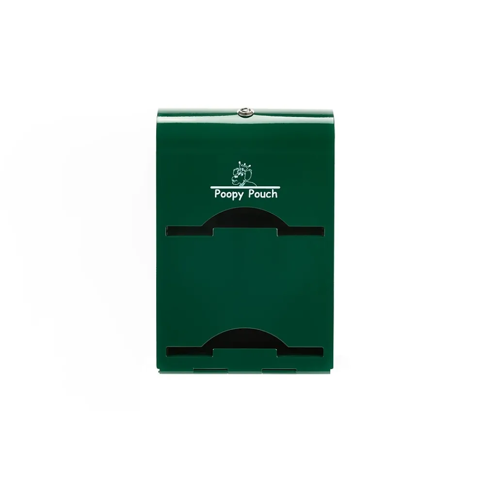 - Galvanized steel, locking dispenser provides pet owners with easy access to Poopy Pouch Bags