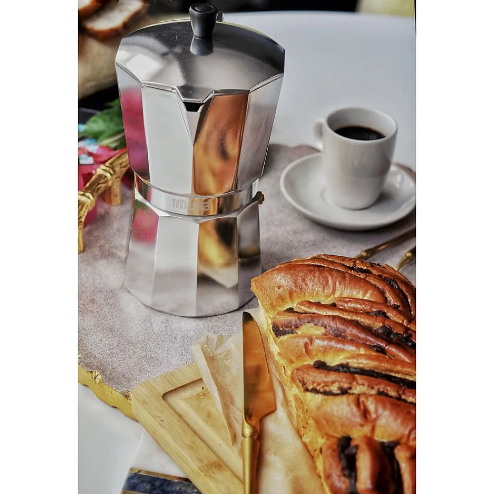 The IMUSA Stove top Espresso Makers allow you to be a barista at home! This stove-top espresso maker brews under a mild pressure, forcing hot water up from the base through ground coffee then into the top carafe in just minutes! You will love the rich, full-bodied flavor produced by this stove top method, made popular in Europe and Latin America.