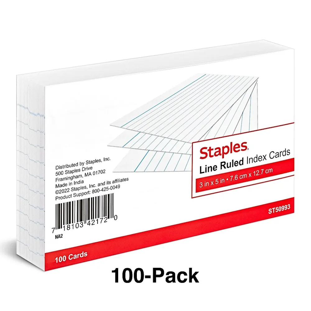 Handle your note-taking needs with this 100-pack of white index cards. The precision-cut edges help ensure the cards are the exact same size, making presentations look professional, while the line-ruling keeps your writing legible. These Staples Business Essentials 3 x 5-inch line-ruled index cards feature blank backs for sketches.