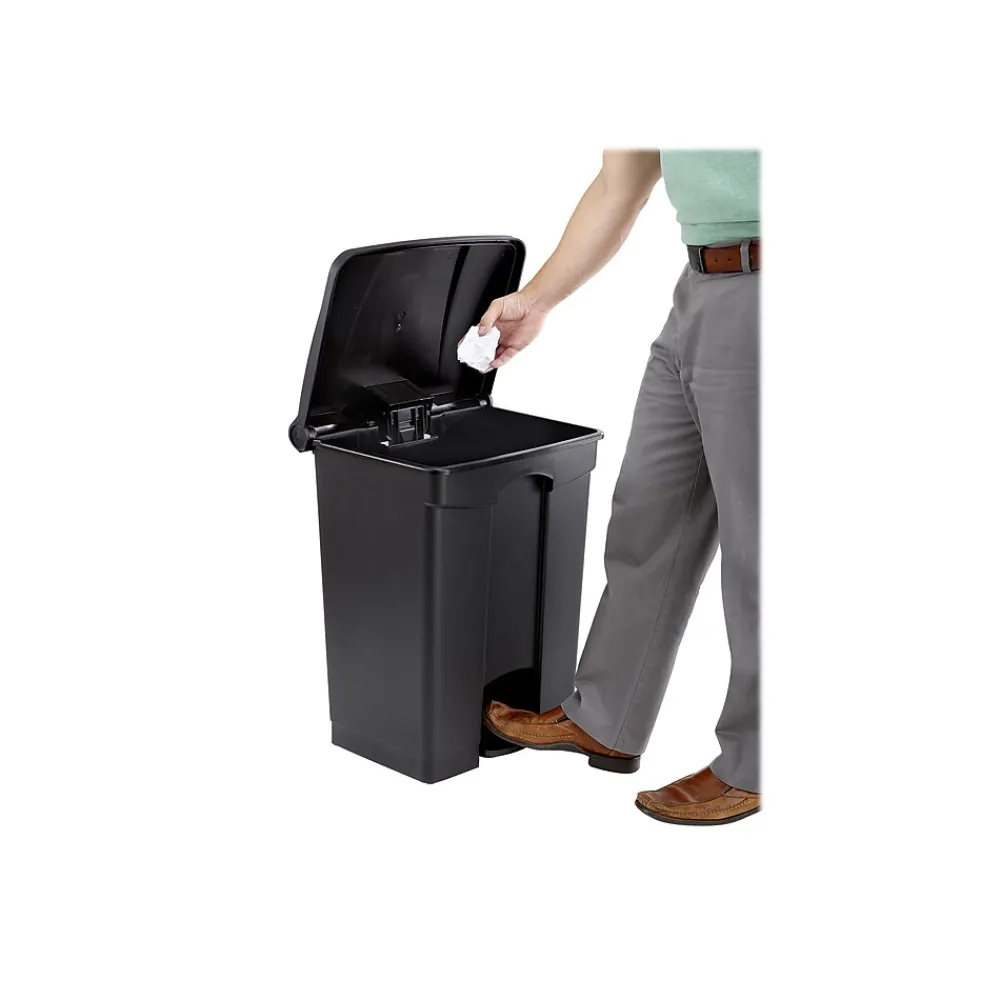 - Step trash can ensures clean and litter-free space and provides hands-free operation