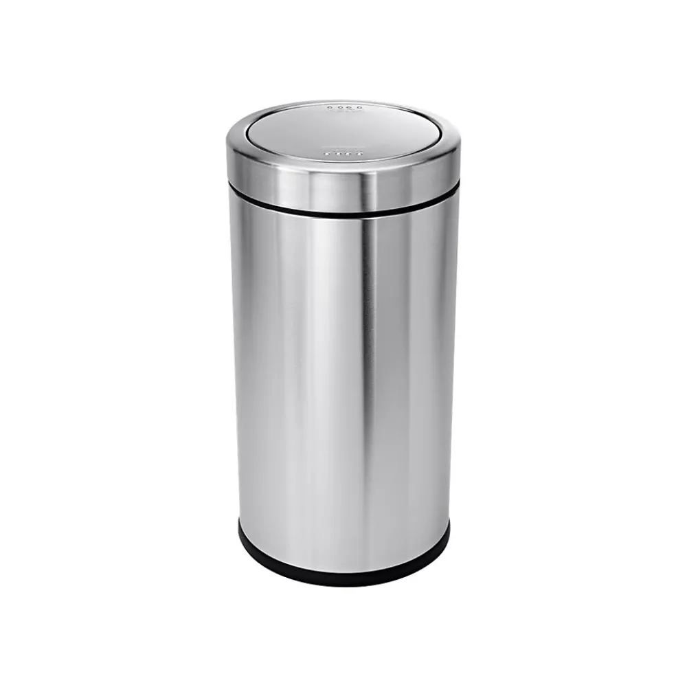 Balanced swing lid opens easily then gently swings back into place. Sturdy stainless steel construction, lift-off lid, and large capacity are ideal for commercial spaces.