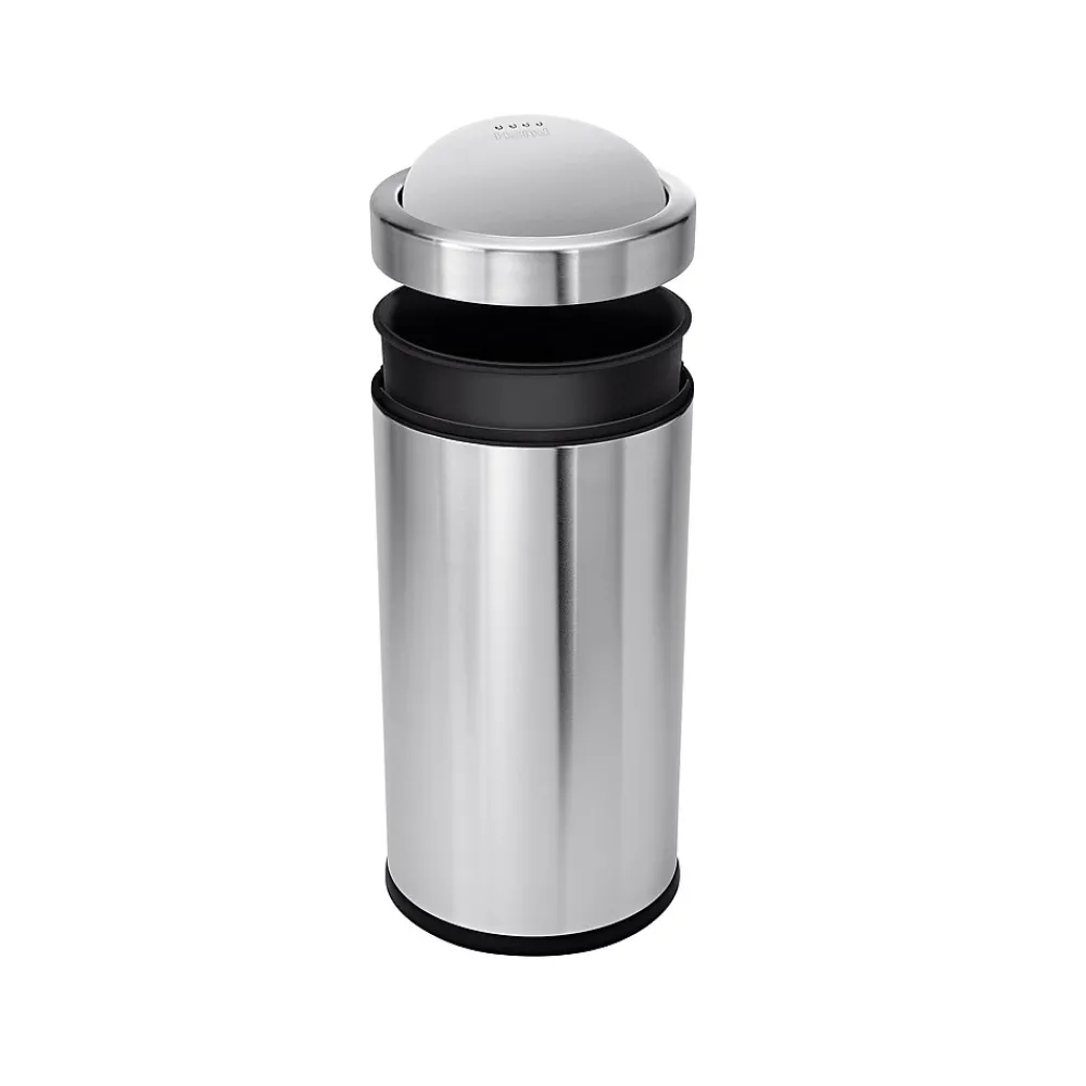 - Balanced swing lid – Center-weighted swing lid opens easily and then gently swings back into place.