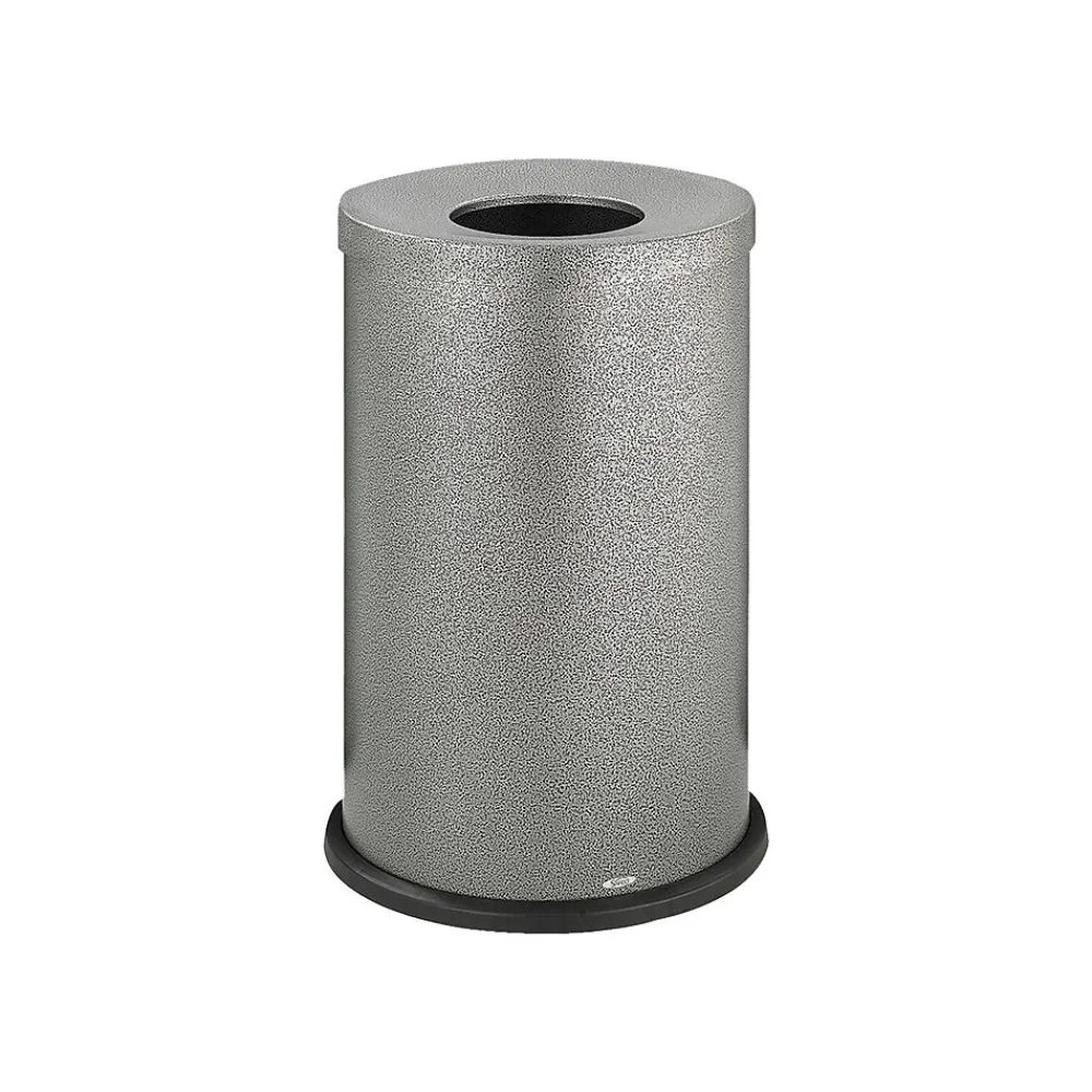 Provide a waste management solution that stands up to wear and tear with the puncture-resistant steel construction of this receptacle. Featuring a black speckle finish, this container disguises fingerprints, and with a 35-gallon capacity, it’s a great option for keeping high-traffic areas clean. This Safco indoor receptacle has double-lock seams for increased sturdiness and an open-top design, making it easy to toss away trash.