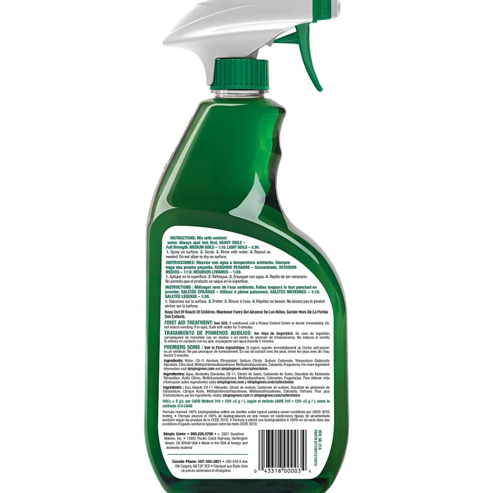 Destroy oily films and other substances that build up on appliances and floors with this all-purpose degreaser. The non-abrasive, non-corrosive formula preserves delicate surfaces, and it’s bleach-free, making it ideal for those with sensitive respiratory systems. This Simple Green degreaser easily removes ink and pet stains from carpets, upholstery and painted walls.