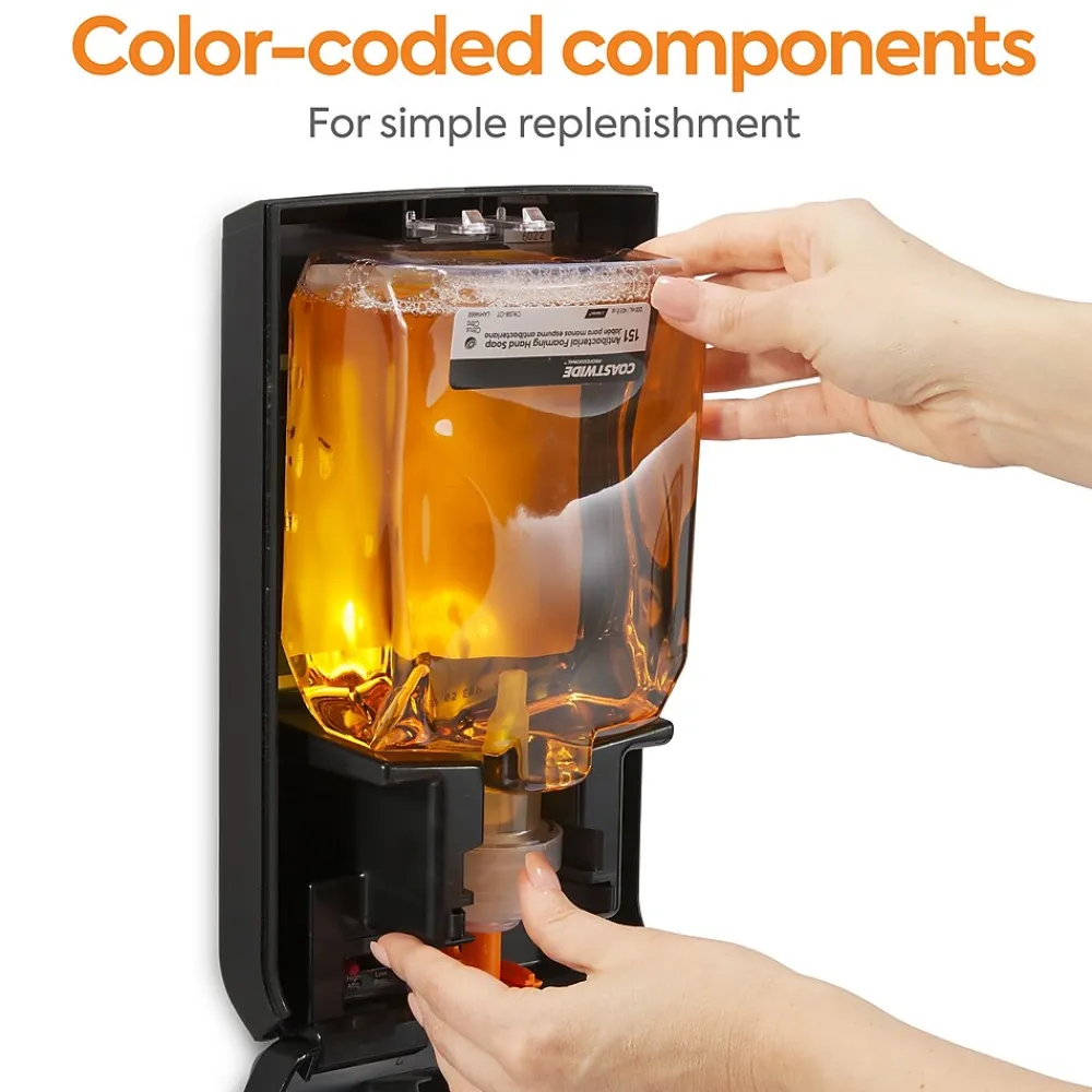 Make it easy for maintenance staff to reload dispensers with the color-coded labels on this foaming hand soap. This 2-pack of Coastwide Professionalâ„¢ J-Series antibacterial foam hand soap is compatible with both automatic and manual J-Series dispensers for a precise fit. This foam hand soap washes away dirt with effective results with each wash.