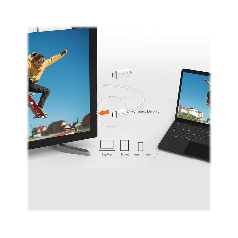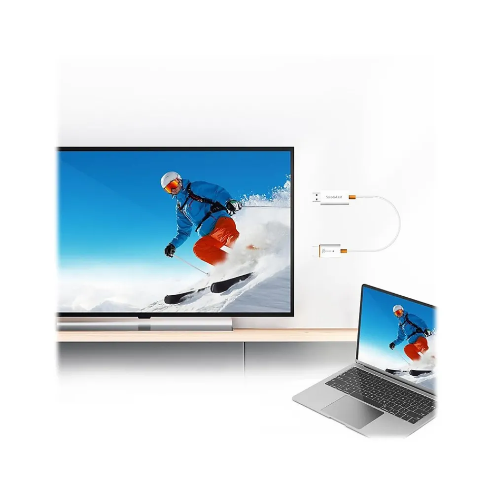 - Its size and shape make the JVAW56 ScreenCast USB to HDMI connector an excellent travel accessory
