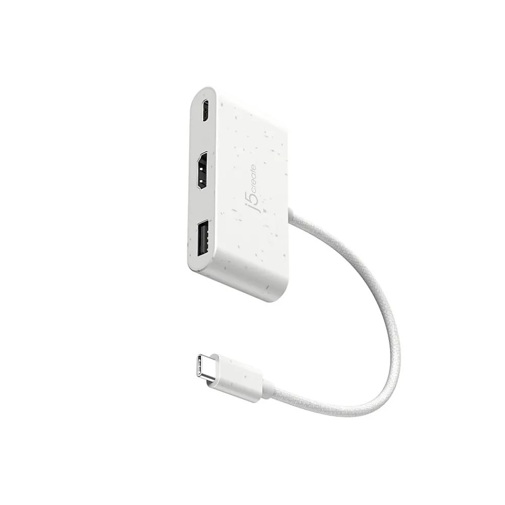 Add extra functionality to your laptop with the j5create Eco-Friendly USB Type-C to HDMI and USB Type-A with Power Delivery hub. This device allows you to add USB Type-A, HDMI, and USB Type-C devices that can be charged through your USB Type-C port. The USB Type-A SuperSpeed port gives you data transfer rates up to 5Gbps. The HDMI port supports resolutions up to 4K. Equipped with a USB Type-C Power Delivery 3.0 charging port, the hub offers charging up to 100W when connected to a USB Type-C power adapter.