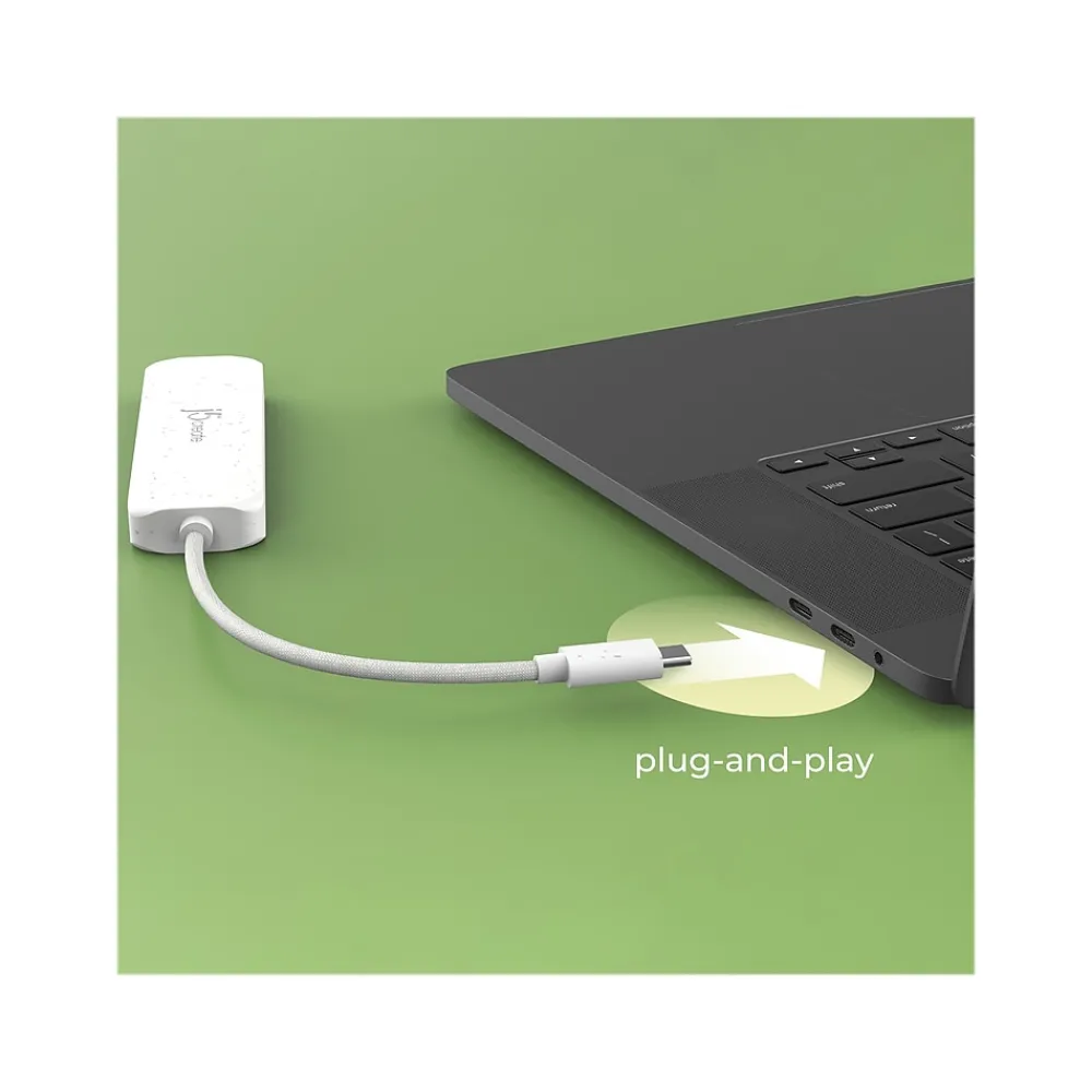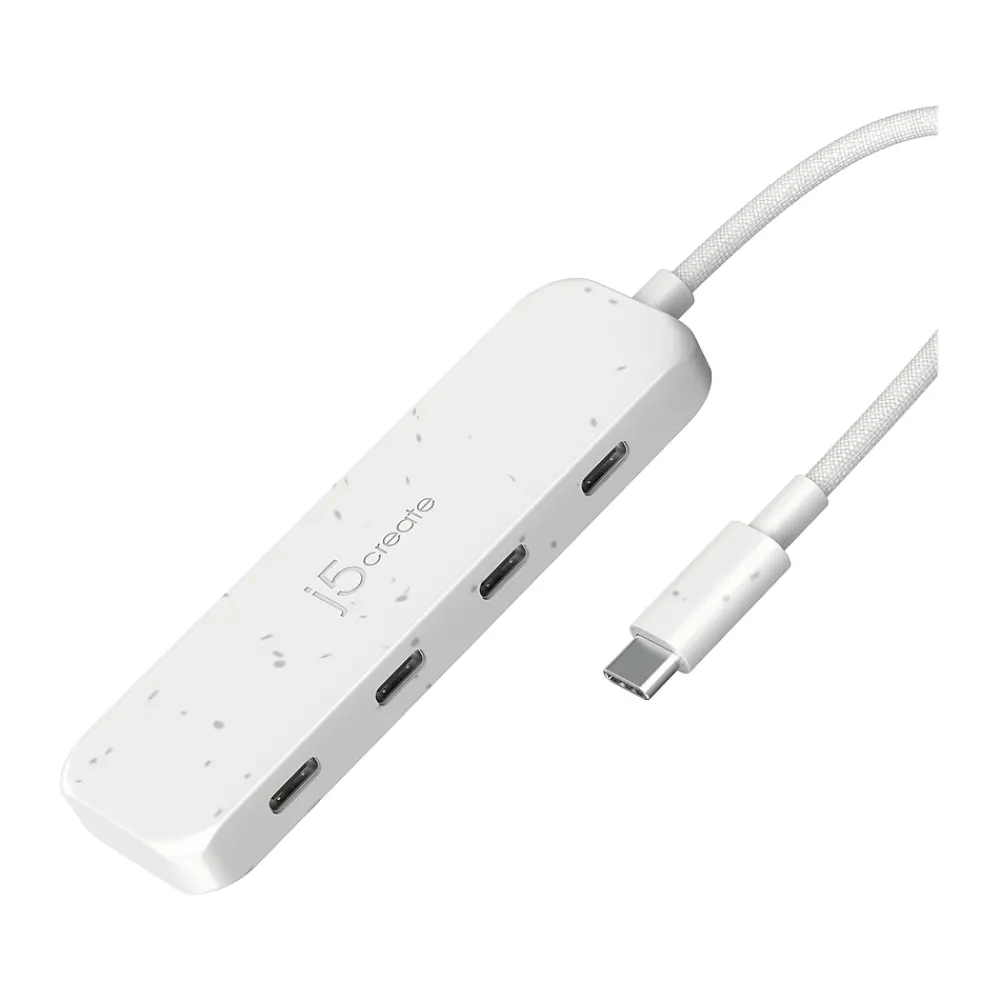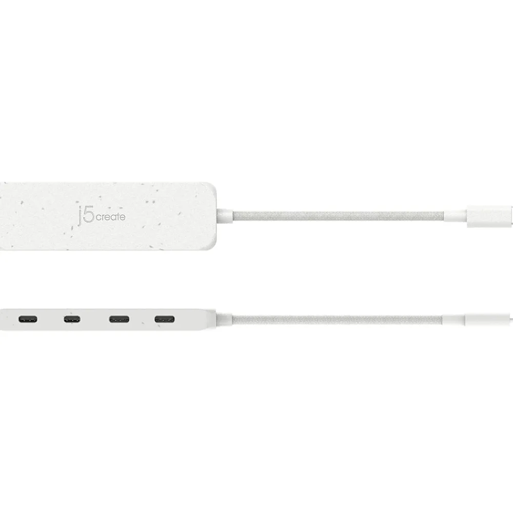 The j5create Eco-Friendly USB Type-C to four-port USB Type-C Gen 2 hub provides extra connectivity for your computer with a fast transfer speed of up to 10Gbps. This pocket-size hub allows you to add additional USB computer accessories through your USB Type-C port. This hub is great for computers that lack USB ports. It is perfect for MacBook, Chromebook, and other laptop or desktop computers with a USB Type-C port. Eco-friendly, fast, and portable, this unique hub gives you USB connections in one compact hub.