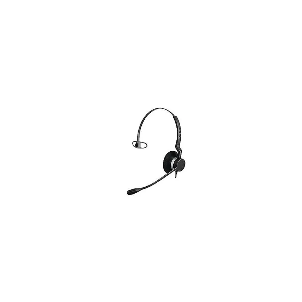 The Jabra® Biz 2300 GSA2393-823-109 wired on ear mono headset in black, has an adjustable headband, built-in DSP, Kevlar reinforced cable, noise canceling circuit and crystal clear freespin boom. It supports HD voice technology, Jabra Safetone technology, Peakstop technology and wideband technology for high performance operation. The built-in microphone uses noise canceling technology to prevent external disturbing sounds. It has answer/end, mute and volume control buttons. It is suitable for conference rooms.