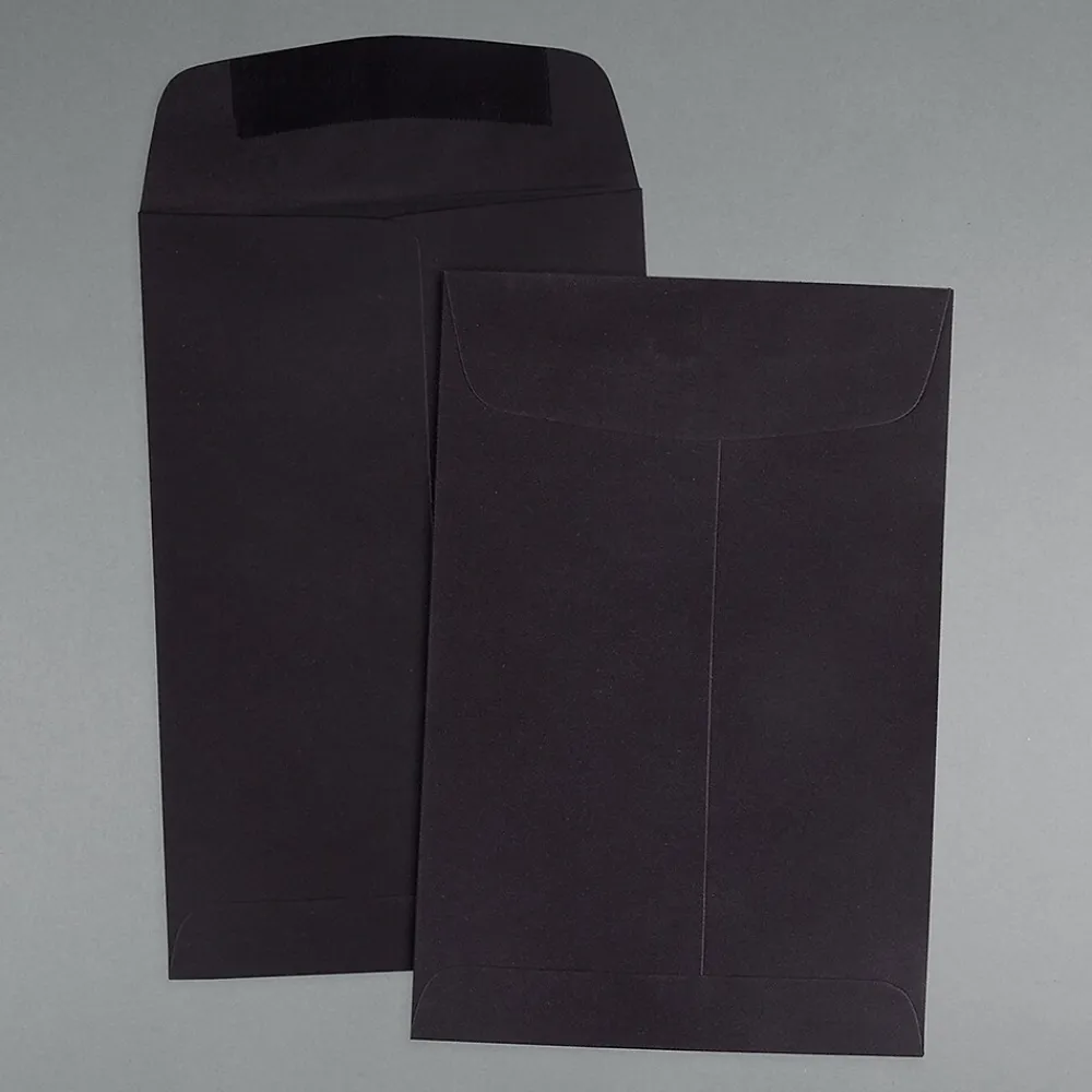 JAM Paper Black 6x 9 Open End Catalog Envelopes are great for folded documents, greeting cards, invoices, announcements, mailed checks, invitations, and more! In this pack, there is a total of 100 envelopes. Each of these envelopes is made out of smooth, high quality, 24lb paper and measures 6 x 9 inches in size. These open end envelopes feature straight flaps with dependable gum closures to keep enclosed items secure in transport. The professional and sleek jet black color of these envelopes makes them fantastic for use in any home or office. Trust these envelopes to carry your mail safely and to give any mailed item a fashionable look for any occasion!