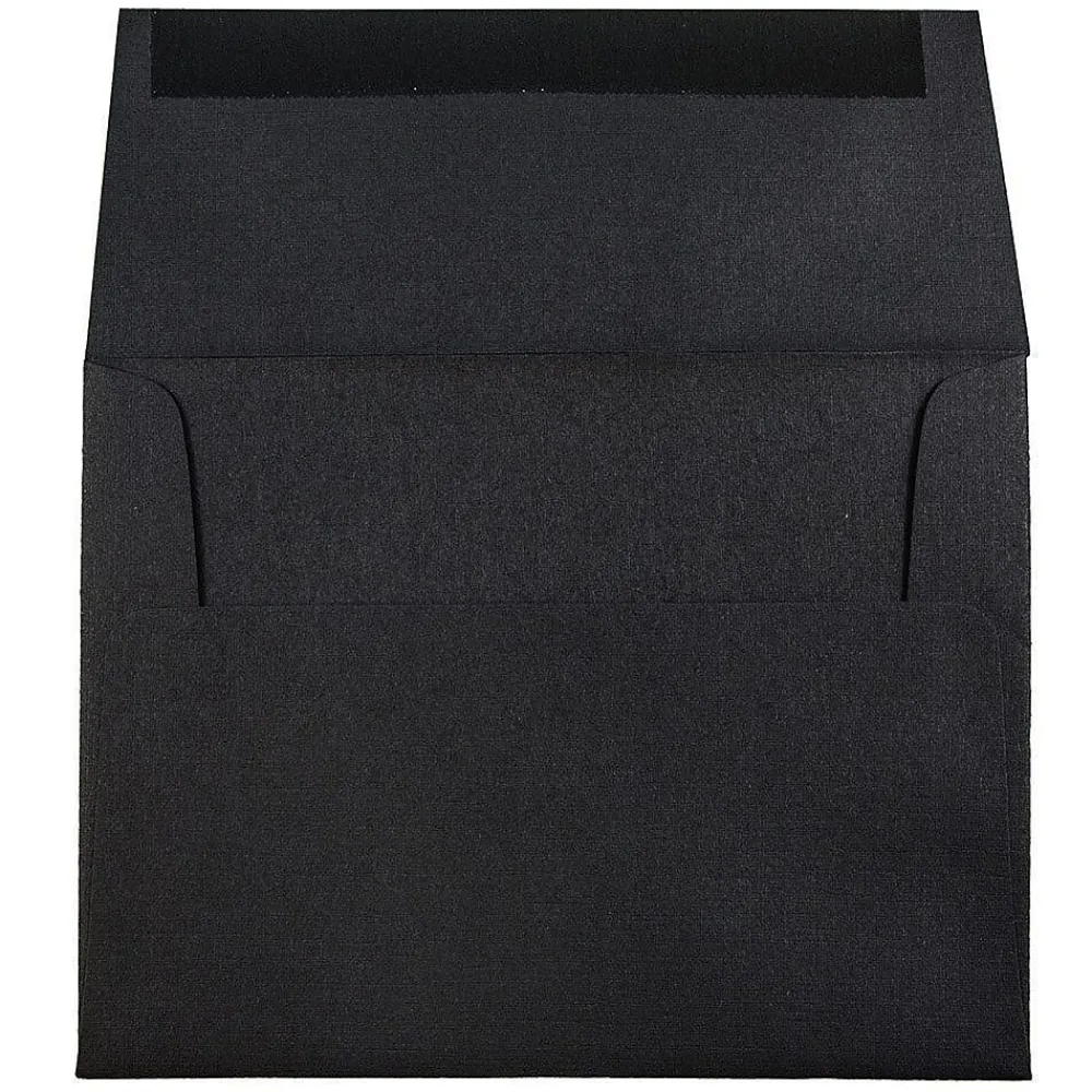 The JAM Paper A2 black linen recycled envelope is a great choice for inviting friends and family for a number of occasions like wedding, birthday and graduation parties or even for sending your special personalized messages. This stylish envelope can easily make an impression on the recipients. Constructed of environment-friendly recycled paper, it is sturdy and durable for usage. Its folding closure type offers a convenient opening and closing process and is ideal for carrying your messages, cards and invitation notes safely. Available in a lovely black color, this envelope effortlessly combines style and utility. The linen finish makes it a stylish accessory to go with your invites and notes. It contains 50 envelopes per pack for your use. Whatever the occasion is, this envelope will help you to send your invitations in style.