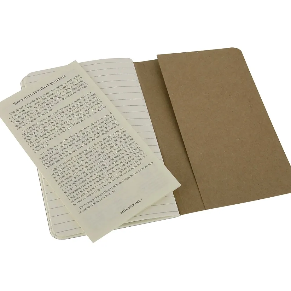 Moleskine Cahier Journal in kraft brown soft cover with pocket size, ruled paper measuring 3-1/2″ x 5-1/2″ offers good quality and great comfort for writing. Journal is a great tool to keep track of meetings and action items, sold as 3 per pack.