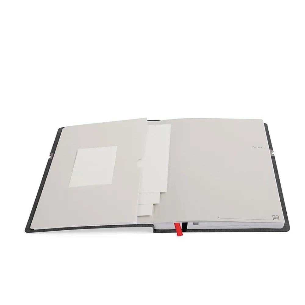Enhance your productivity with this 192-page charcoal hardcover journal. Lined pages with dividing markers let you write notes and create lists and tables in one page, while the included pocket journal is ideal for recording information on the go. This TRU RED 8 x 10-inch charcoal Mastery journal has an inside front cover pocket to accommodate important documents, tickets and cards.