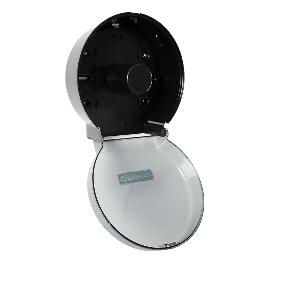 Mount this bath tissue dispenser in restrooms to hold jumbo rolls. This dispenser is made of shatter-resistant plastic for long-lasting durability, and the design keeps bath tissue clean and protected while providing easy access from the open area below. The tinted window lets you easily monitor the level of tissue inside, and two included keys make this dispenser lockable. This Coastwide Professional™ jumbo bath tissue dispenser is compatible with 9-inch jumbo-sized rolls with standard 3-inch cores.