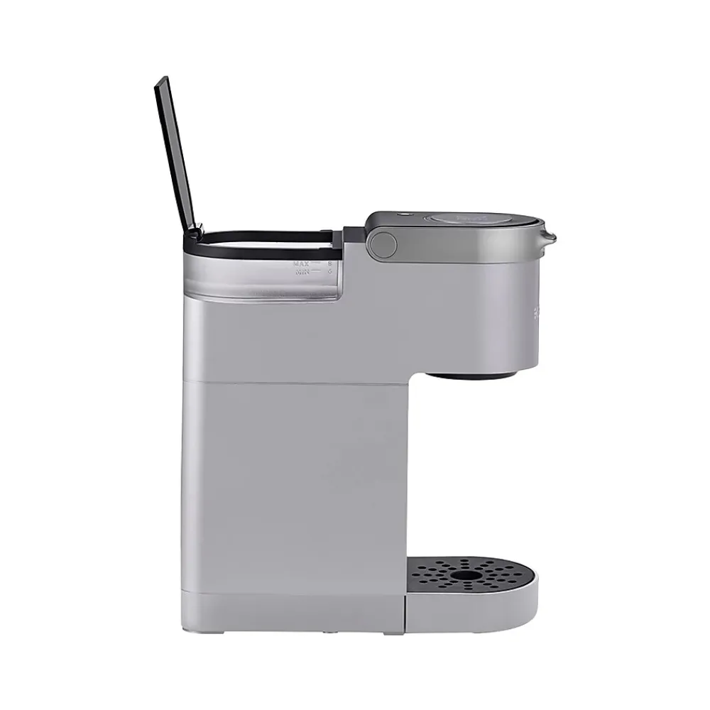 This Keurig K-Suite coffee maker features easy-to-clean surfaces. It fits most travel mugs thanks to a removable drip tray. The cord storage eliminates clutter while auto-off feature saves energy.