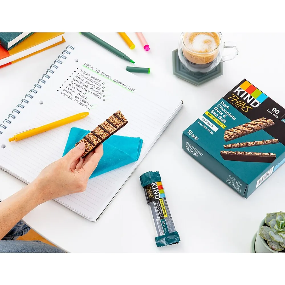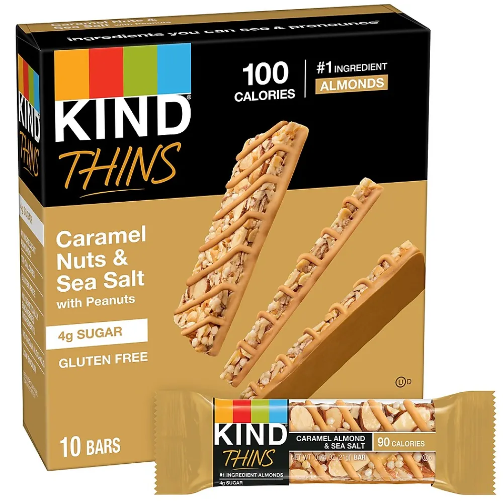 - Pack includes 10 KIND Thins Dark Chocolate Nuts & Sea Salt 0.74 oz bars, 10 KIND Thins Peanut Butter Dark Chocolate 0.74 oz bars and 10 KIND Thins Caramel Almond & Sea Salt 0.74 oz bars for a total of 30 nutritiously thin bars