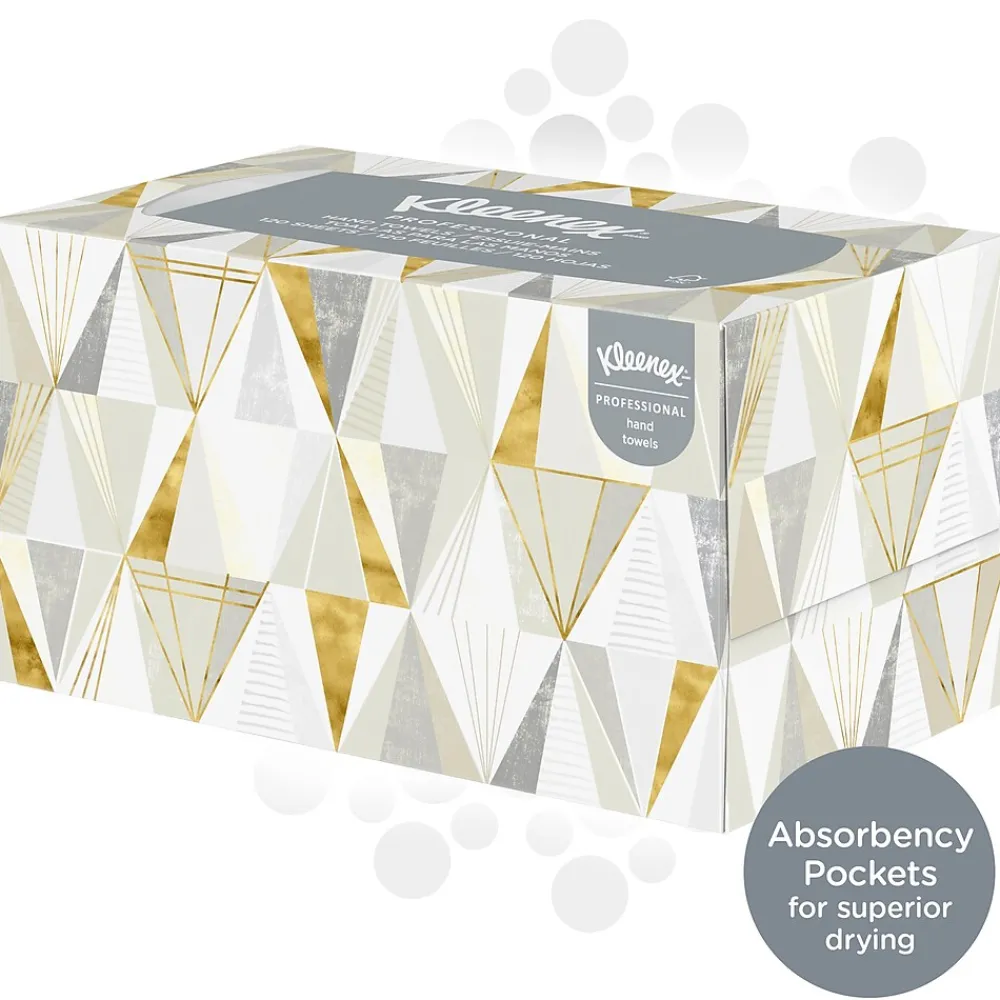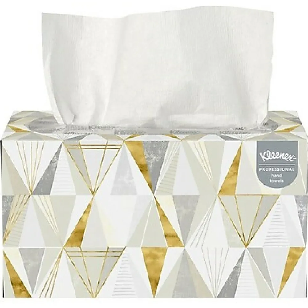 Outfit your office, break room, kitchen or other shared space with these pop-up towels. The convenient dispenser box makes it easy to grab one paper towel at a time, while the decorative box design adds a touch of style to your workspace. Each towel features thick, absorbent construction to soak up liquids and leave surfaces dry. A soft texture is gentle on the hands, providing an ideal solution for private restrooms. With a crisp white color, these Kleenex pop-up towels offer a bright, clean look.