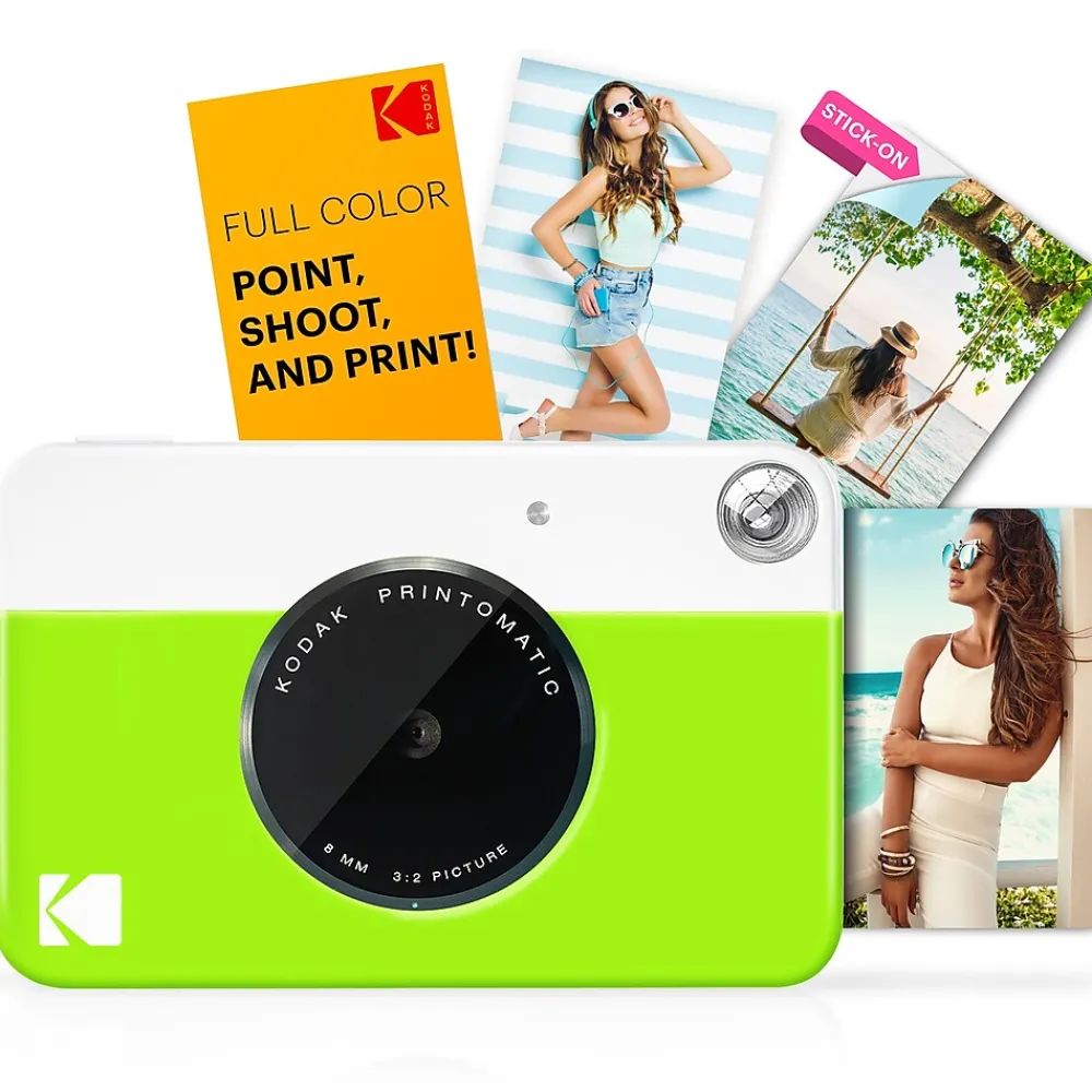 The Kodak Printomatic Mini Instant Camera prints smudge-proof, water- and tear-resistant photos up to 5 MP automatically. With this Kodak instant camera, you just point, shoot, and print. Perfect for taking on the go, whenever you want to share prints, the Kodak Printomatic Wireless Mini Instant Camera is the easiest way to share photos with friends. This mini digital camera’s compact design slips neatly into your shirt pocket. The portable camera speed even allows you to continue shooting while your photo is printing. The “Insta Camera” Zero Ink technology means you don’t need to worry about messy print cartridges, film, or toner. With this instant picture camera your prints are adhesive-backed, so you can get creative and use the photos to decorate, just as you would any sticker. No USB cable is included.