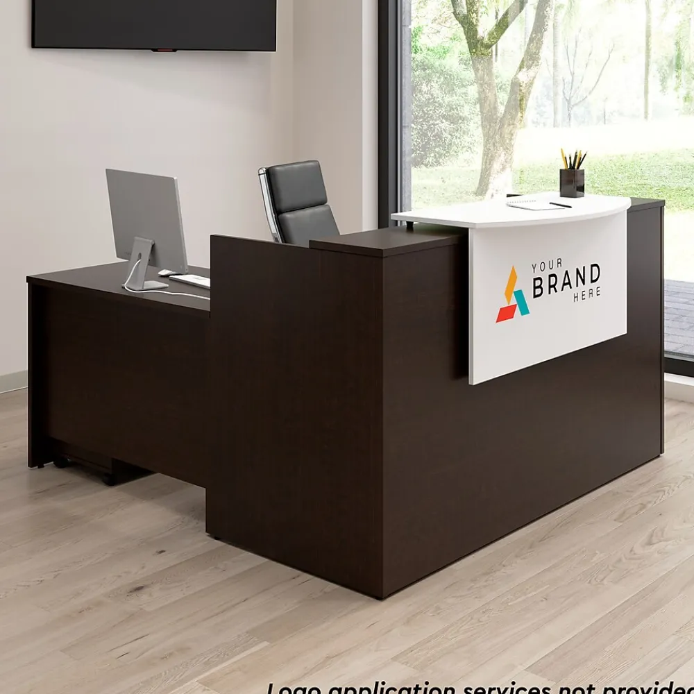 - Bundle includes: 72W x 30D Reception Desk with Shelf, 42W Desk Return, Bow Front Reception Counter, 3 Drawer Mobile File Cabinet