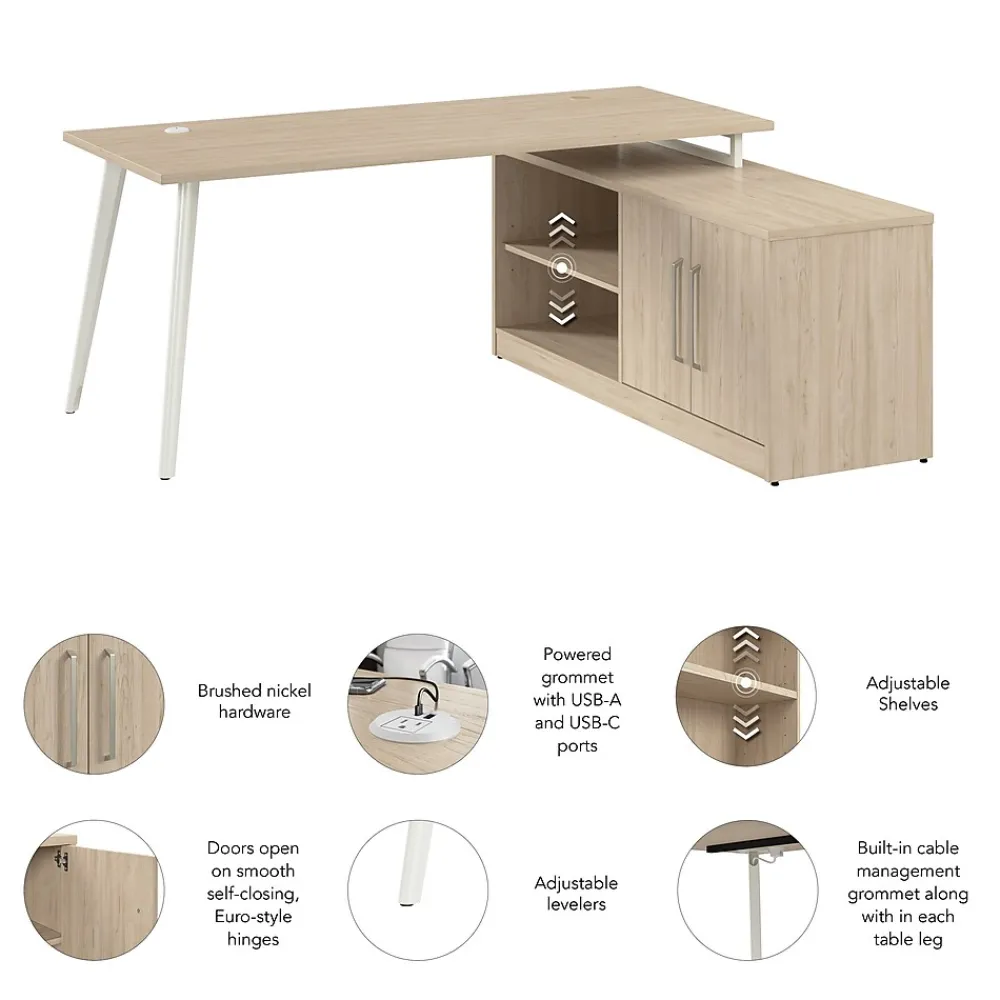 - Desk Return attaches to low storage cabinet to form a right or left-handed L Shaped Desk; credenza’s open and closed storage areas each contain one fixed and one adjustable shelf to accommodate items of various sizes