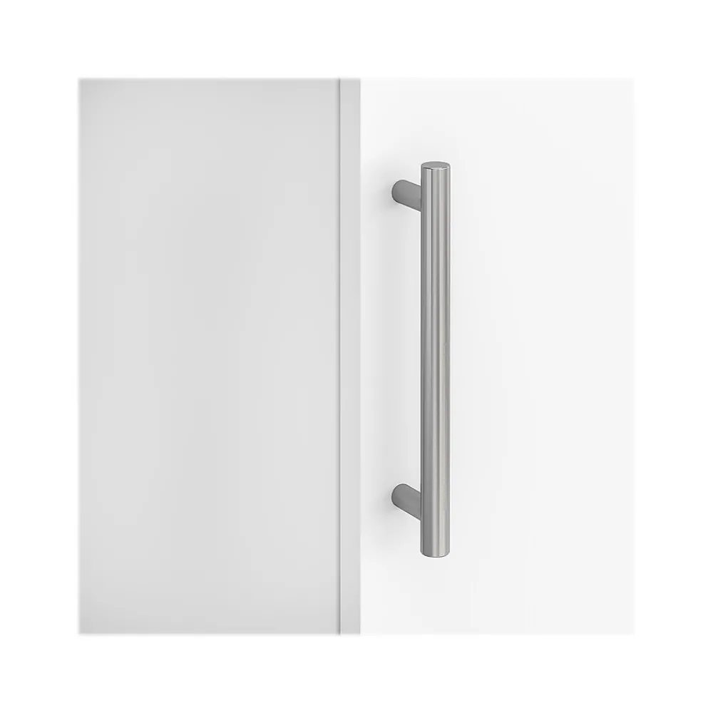 - Vertical storage cabinet contains one adjustable shelf for storing items of various sizes