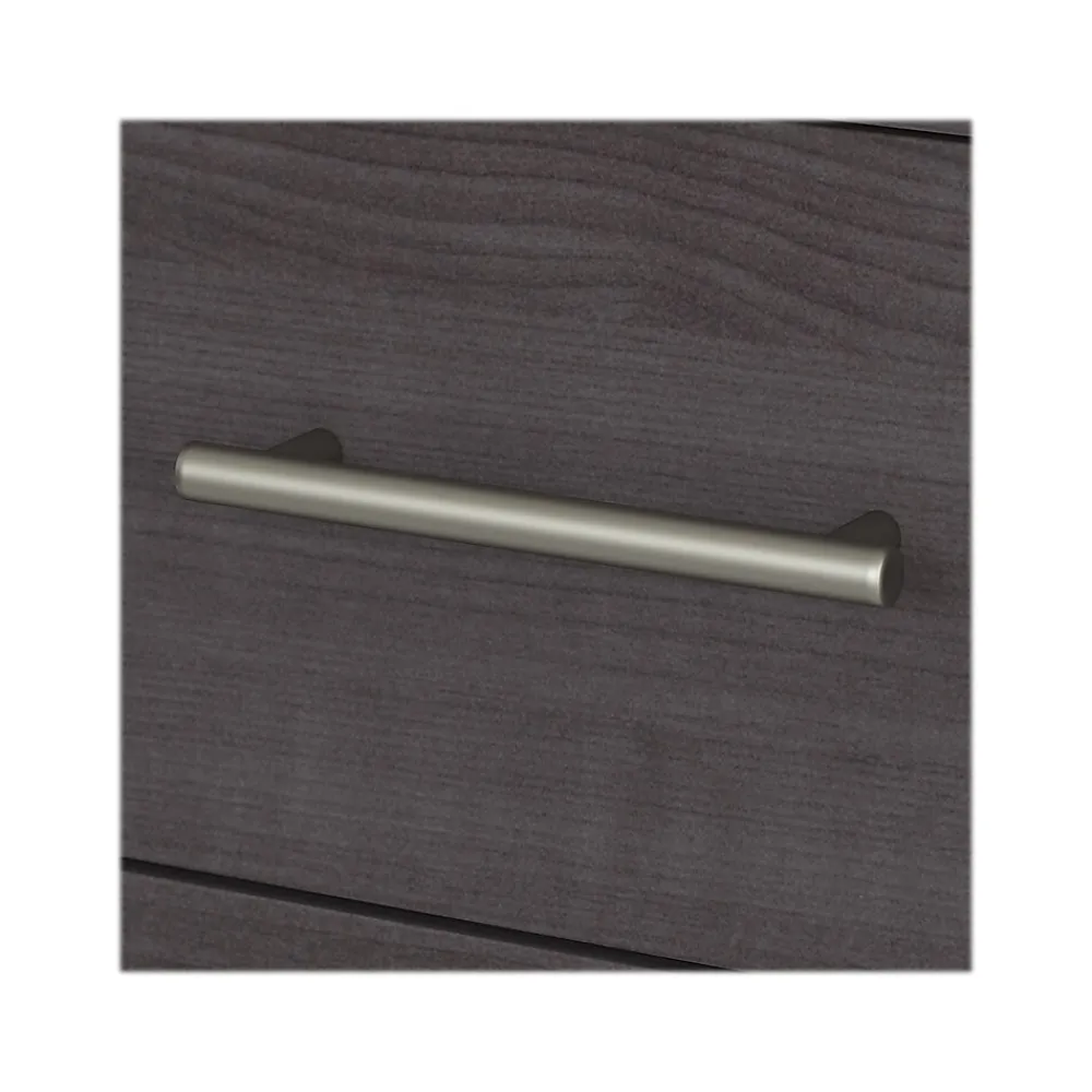 - Laminated over Composite Wood in a Storm Gray finish