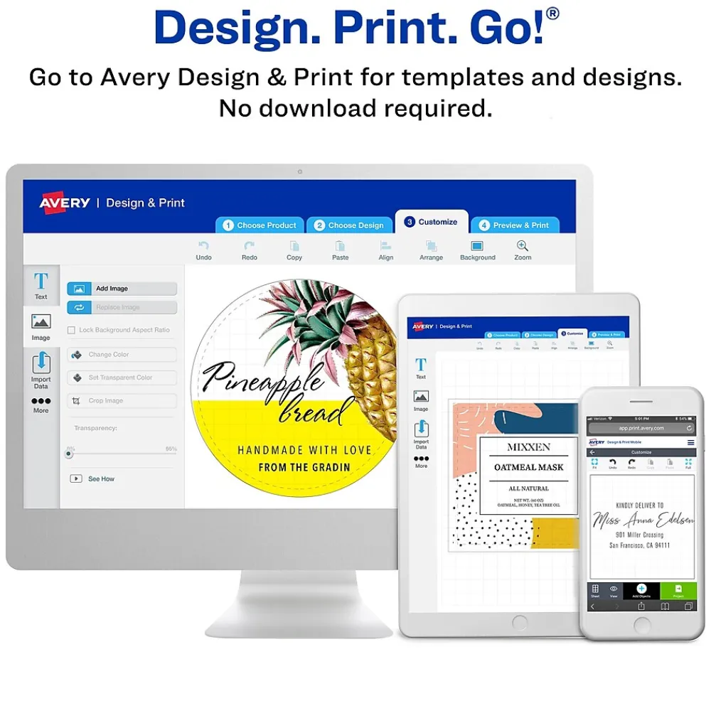 Designed to withstand the elements and tough conditions, durable waterproof Avery rectangle labels are perfect for making sure that your products and projects stay protected. These labels are completely waterproof and able to stay intact even when submerged in water. Great for food applications, these durable labels are temperature resistant, oil resistant and also withstands damage from scuffing, tearing and smudging. Also chemical resistant, these labels make it easy to wipe away viruses and germs with multipurpose cleaners and disinfecting wipes. Each sheet of labels also features Sure Feed(R) technology which helps deliver a more reliable feed through your printer to prevent print misalignments and paper jams. The print-to-the-edge label layout makes it easy to print beautiful designs that fill the entire label without a white border. A strong permanent adhesive is used to make sure that these labels stick and stay to paper, cardboard, plastic, glass, metal and more without curling or falling off. Avery Design & Print makes it easy to create customized labels from your own home or business. The free browser-based software has everything you need to design food labels, lotion labels, hand sanitizer labels and more. Try it out today at avery.com/templates. Please Note: Avery durable waterproof labels are compatible with laser printers and pigment-based inkjet printers but are not compatible with traditional dye-based inkjet printers. Ink from dye-based inkjet printers will smear when exposed to water. Please check your printer’s manual to confirm if you are using pigment-based ink.