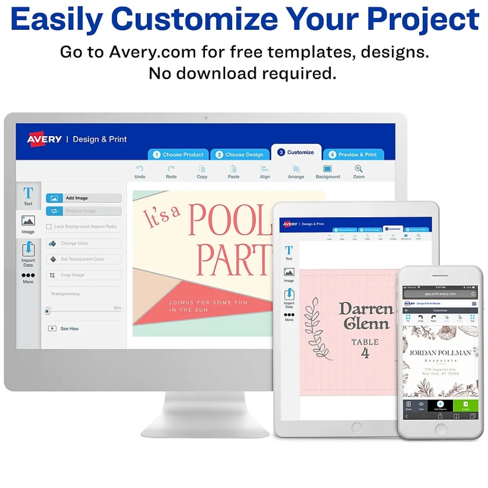 Creating your own custom stickers is quick and easy with matte white Avery 3383 printable sticker paper. Each 8.5” x 11” sheet of blank sticker paper is the perfect canvas for one giant sticker or numerous smaller stickers that can be cut out in a variety of shapes and sizes using scissors or an electronic die-cutting machine like Cricut or Silhouette. This matte sticker paper for inkjet printers is designed to feed smoothly through the printer, resulting in clear text and crisp graphics. Each sheet of repositionable sticker paper for printers is acid-free and lignin-free, making them a great choice for use with photos, and the convenient back slit liner makes it easier to peel the stickers away from the paper backing. Create custom stickers or labels with your own artwork, photos, and texts for unique, one-of-a-kind creations. You can also use Avery Design & Print Online, our easy-to-use software that features tools and templates for personalizing your designs quickly and easily. Great for large labels, planner stickers, scrapbooking, posters and signs, labels for storage bins, party decorations, wedding favors, do-it-yourself gifts and more. This item comes with 15 matte white sheets of 8.5” x 11” Avery sticker paper.