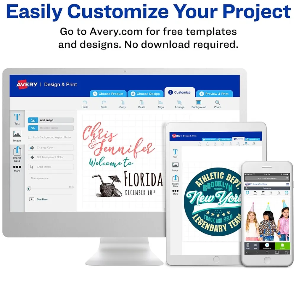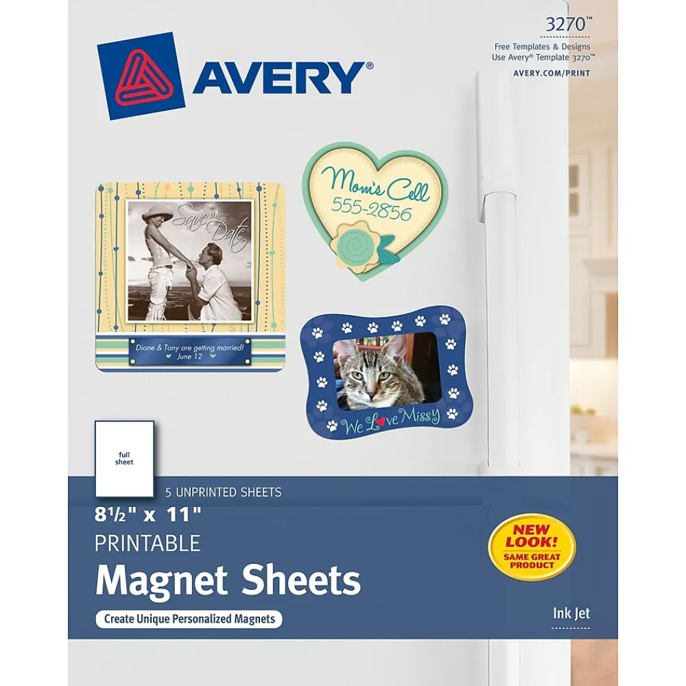 Quickly and easily create your own custom magnets with Avery printable magnetic sheets. Whether you want to design decorative customized magnets containing your favorite family pictures or something a little more functional like magnetic business cards, all you need is an inkjet printer and a little creativity to get the ball rolling. No templates are required for this product; if your project fits on an 8.5″ x 11″ printable magnetic sheet, place it anywhere on the page and use scissors or an electronic die-cutting machine like Cricut or Silhouette to extract your design. Each magnetic sheet is matte coated, ensuring your designs display rich colors and vibrant photo-quality images upon printing. Magnetic sheets for crafts are lightweight and stick to most metal surfaces, allowing you to come up with creative organization solutions such as magnetic labels for a standing toolbox or a dishwasher magnet. They can also become a fun craft project for kids, turning their favorite cartoon characters into your next refrigerator magnet. Customize your magnetic sheets with your own graphics, artwork, photos, messages and texts or use the free templates and fonts at avery.com/templates. This item comes with 5 matte white 8.5″ x 11″ magnet sheets.