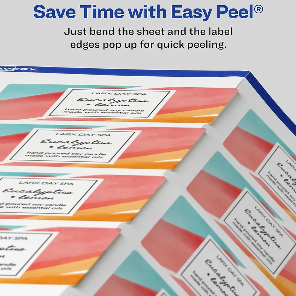 Matte white Avery labels are the perfect choice for any project. The smooth, matte white finish is a great fit whether you’re designing product labels, shipping packages for work, making party favors or adding a creative touch to personal crafts or school projects. Each sheet of labels features Sure Feed(R) technology which helps deliver a more reliable feed through your printer to prevent print misalignments and paper jams. The print-to-the-edge feature makes it easy to print beautiful designs that can reach the edges of the label without a border or outline. Quickly apply these labels with our patented Easy Peel label sheets with Pop-up Edge. Simply fold the sheet back to display the label edges for convenient and fast peeling. A strong permanent adhesive is used to ensure that these labels stick and stay to paper, cardboard, plastic, glass, metal and more without curling or falling off. The versatile label shape can adapt to almost any use, just create your design with our free software and print. Avery Design & Print makes it easy to create customized labels from your own home or business so that you can print professional designs with your laser or inkjet printer. Our free browser-based software includes predesigned templates as well as tools for editing text and images so that you can create food labels, body scrub labels and more. Try it out today by searching for Avery template Presta 94237 at avery.com/templates.