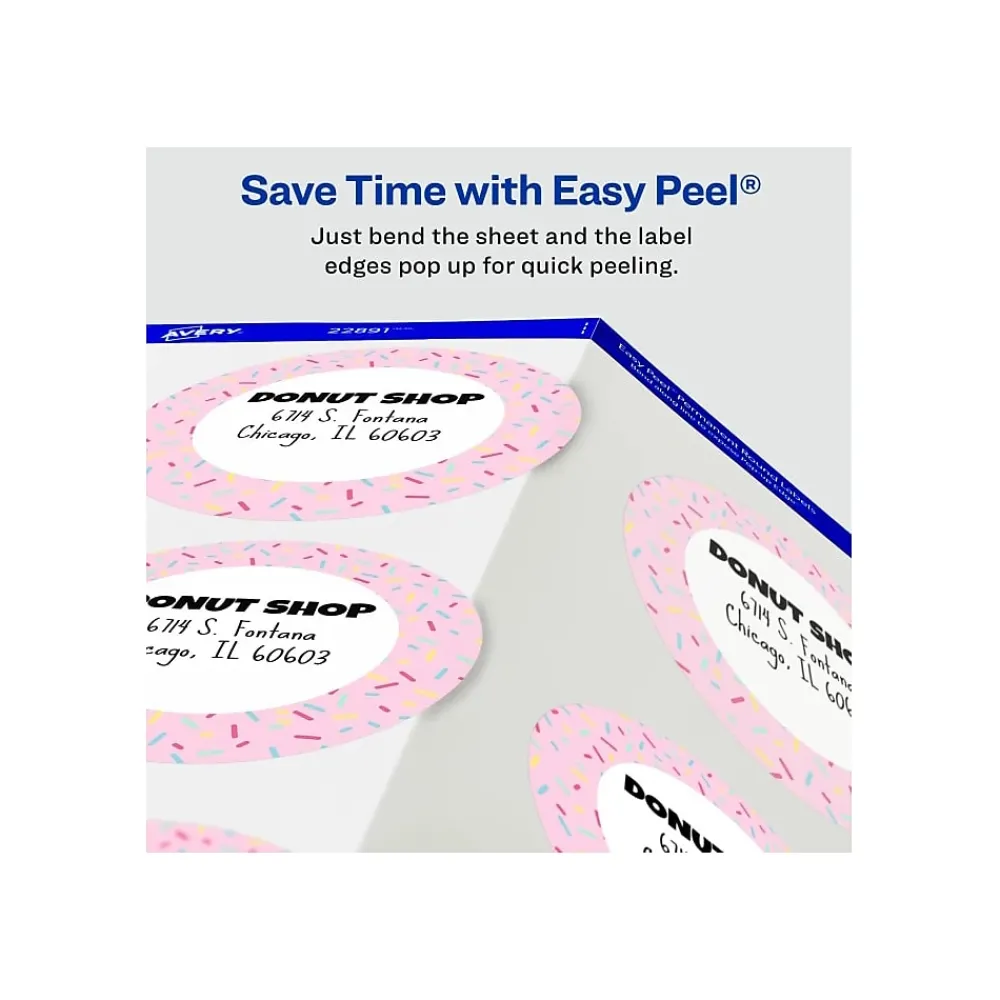 - Save time with Avery labels with the Easy Peel(R) with Pop-Up Edge(R) feature that pops up the edges of the labels for quick peeling