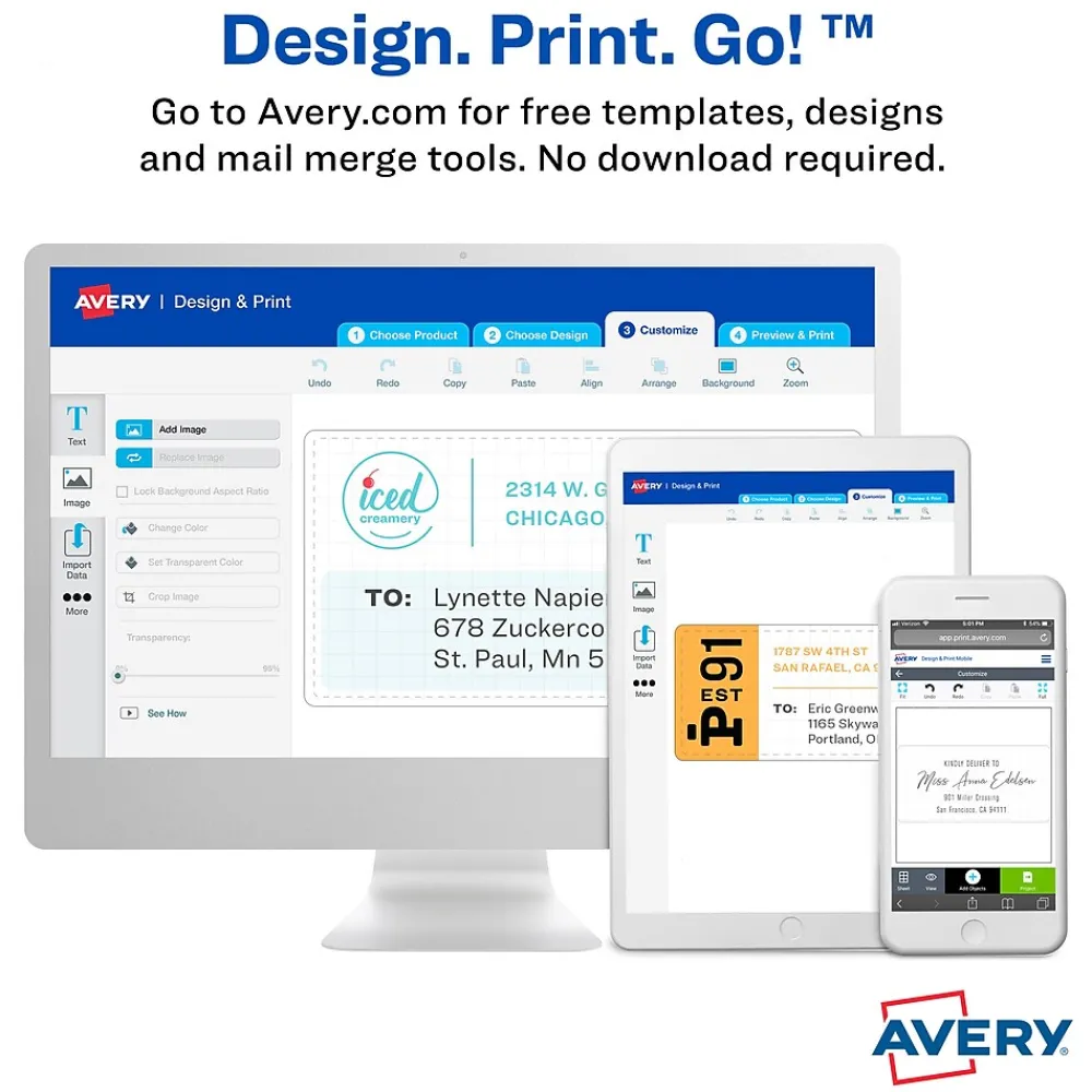 Labels|Avery Sure Feed Laser Shipping Labels, 2"x 4", Assorted Neon, 500 Labels/Box (5956)