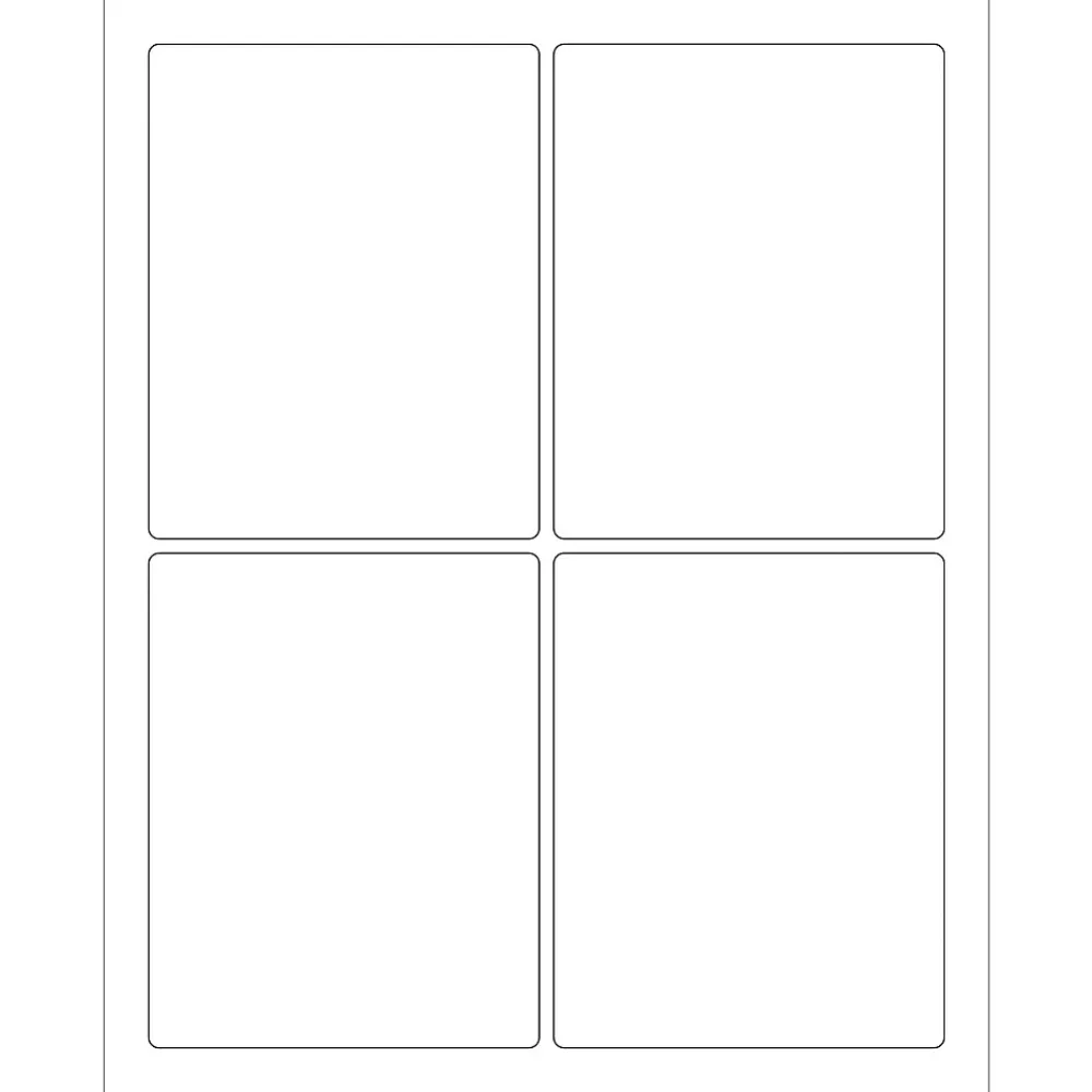 3 3/4 x 4 3/4″ White Rectangle Laser Labels. Use to create your own product or mailing labels. Labels work with both laser and ink jet printers. Permanent adhesive. Labels stick to a variety of smooth surfaces including paper, corrugated, plastic, wood, glass and metal.